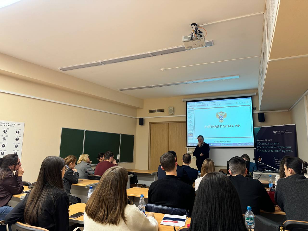 Аудитор Счетной палаты Российской Федерации Саватюгин Алексей Львович провел открытую лекцию для магистрантов обучающихся новой магистерской программе базовой кафедры по направлению «Государственный аудит» направленность «Прикладные технологии внешнего государственного аудита».
