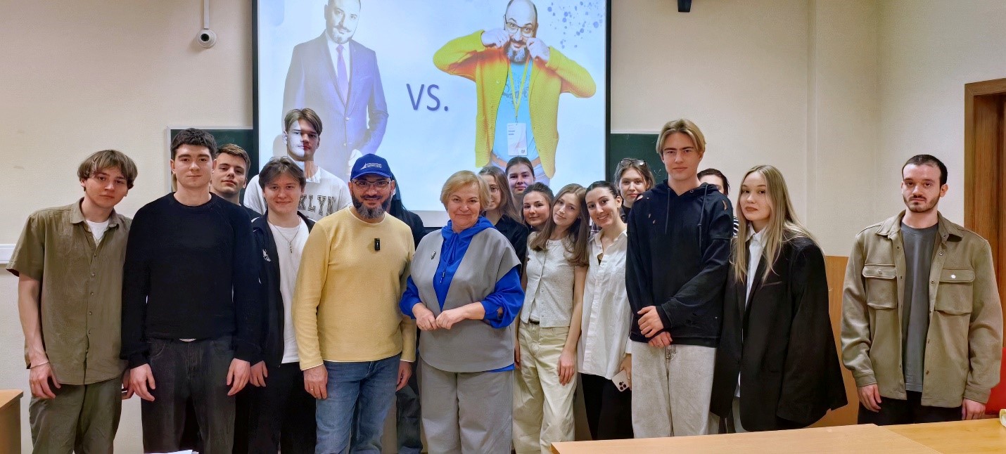14 апреля 2025г. в рамках изучения дисциплины «Практический консалтинг бизнес пространства» (преп. проф. Пряжникова Е.Ю.) студенты-психологи гр. ПВСиМ-22-1-2 встречались с интересным и удивительным практиком генеральным директором компании «Коннектив-позитивные коммуникации», ведущий деловых мероприятий, топ-модератор, фасилитатор, бизнес-тренер по коммуникациям Григорием Борисовичем Айриевым.