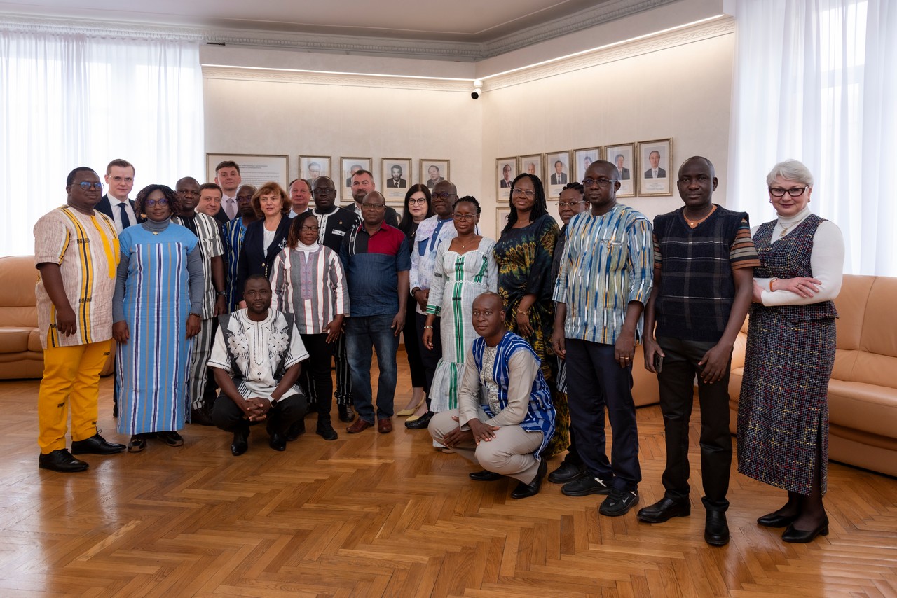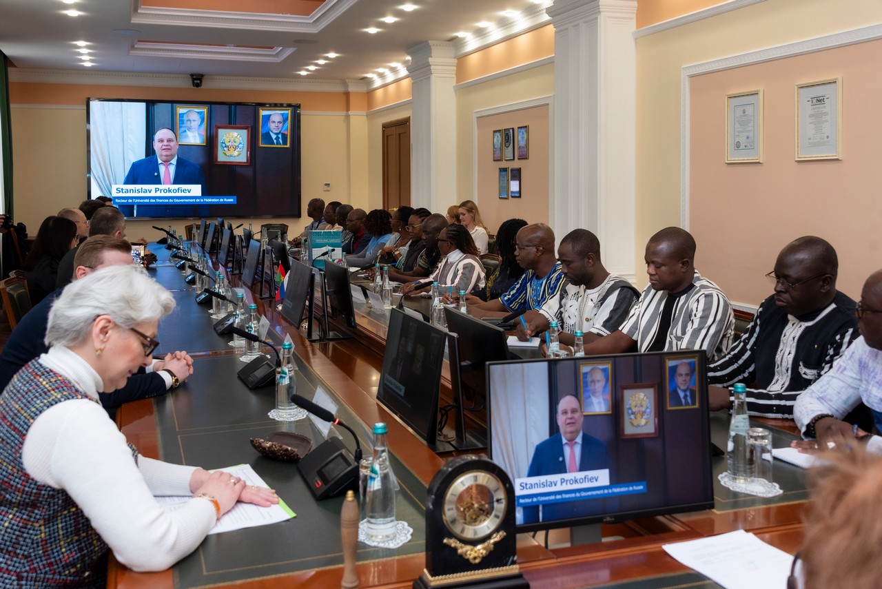 Торжественное открытие стажировки состоялось в Финансовом университете. С онлайн-приветствием к зарубежным гостям обратился ректор университета Станислав Евгеньевич Прокофьев, а также Павел Анатольевич Шевцов, заместитель руководителя Федерального агентства по делам Содружества Независимых Государств, соотечественников, проживающих за рубежом, и по международному гуманитарному сотрудничеству (Россотрудничество). Лично приветствовали участников проректор по дополнительному профессиональному образованию Елена Александровна Диденко и директор по международному сотрудничеству Анатолий Сергеевич Кисляков. С ответным словом и словами благодарности от имени делегации выступил Сени Пама, заместитель министра слуг народа Буркина-Фасо.