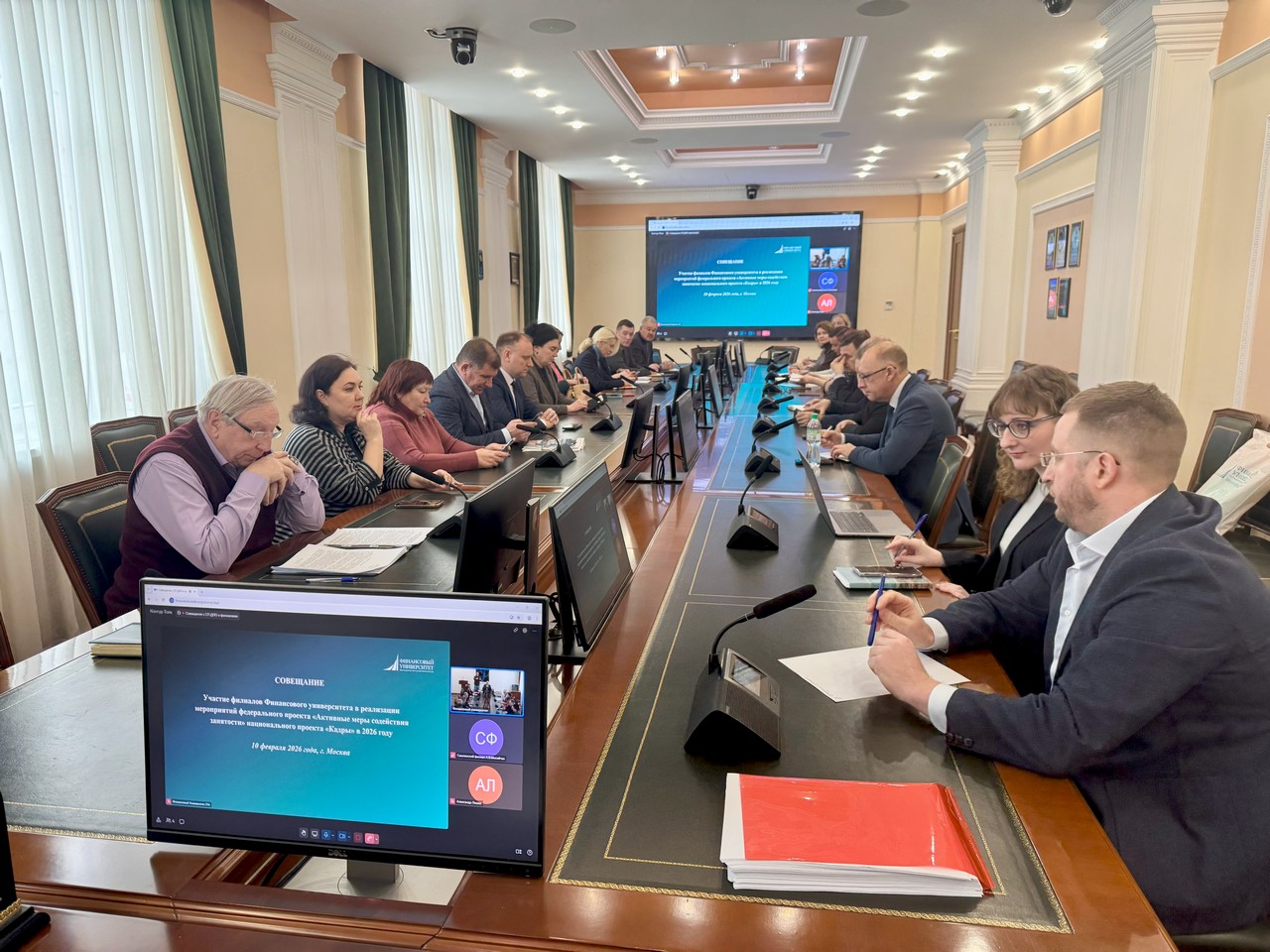 10 февраля 2026 года в Финансовом университете при Правительстве Российской Федерации блоком дополнительного профессионального образования было проведено рабочее совещание, посвященное участию филиалов университета в реализации мероприятий федерального проекта «Активные меры содействия занятости» национального проекта «Кадры» в 2026 году.