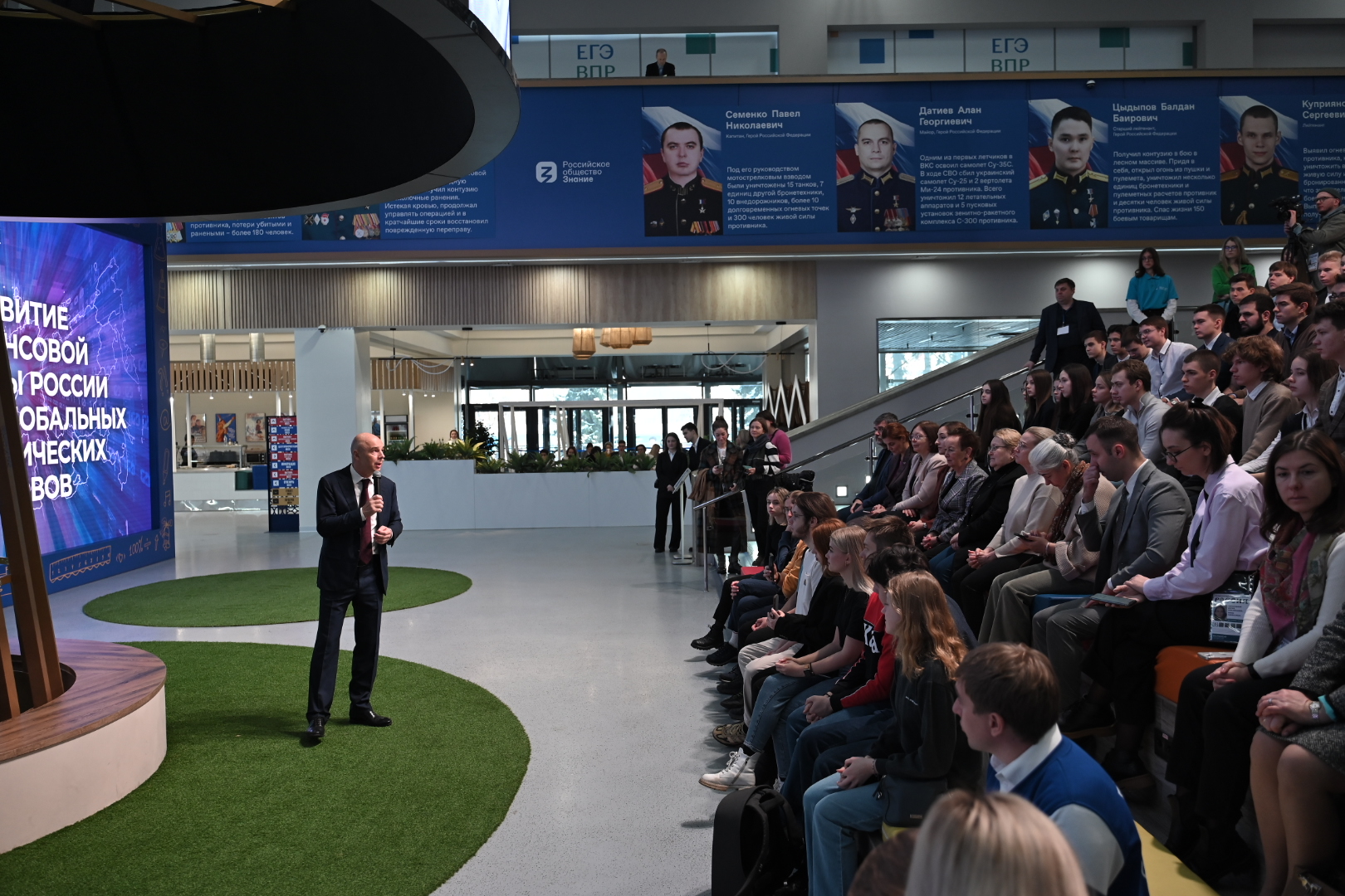 8 декабря 2023 года министр финансов России Антон Силуанов выступил с лекцией для студентов Финансового университета и участников организации «Движение первых» на Международной выставке-форуме «Россия». Глава Минфина рассказал о развитии финансовой системы страны в эпоху глобальных экономических вызовов.