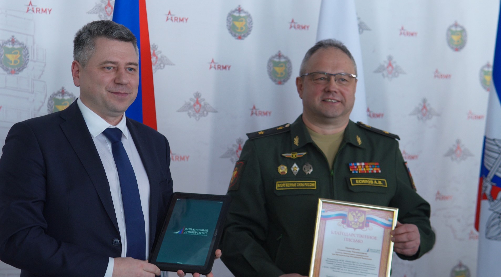 Проректор по стратегии и работе с органами власти Дмитрий Семёнов ко Дню защитника Отечества передал госпиталю от Финансового университета планшеты российского производства, предназначенные для обучения. Военнослужащие, находясь на лечении, смогут бесплатно учиться в Открытой онлайн-академии вуза. На сегодняшний день платформа насчитывает 94 курса, которые охватывают различные области знаний: от финансов и управления до цифрового маркетинга и IT.