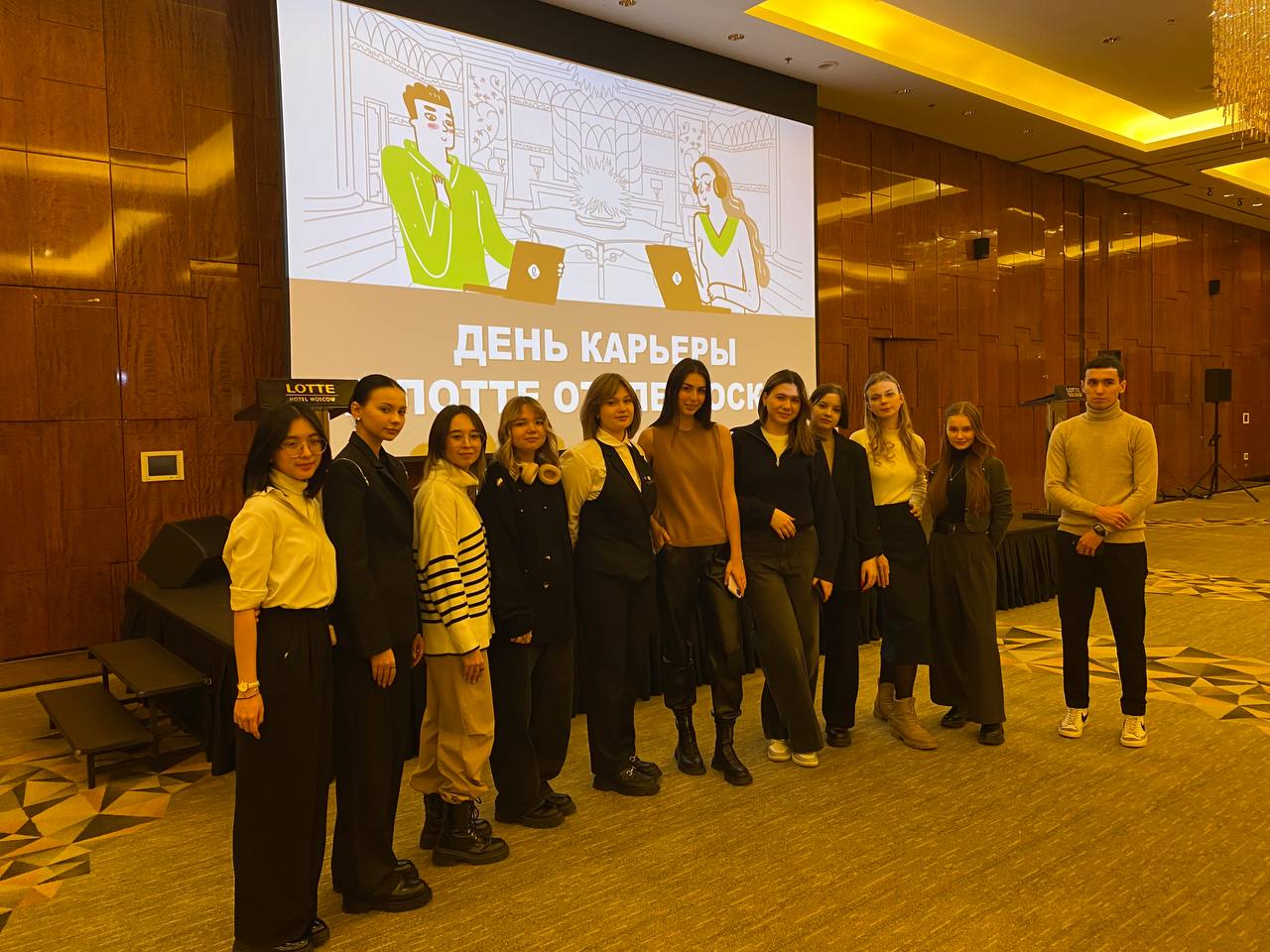 13 ноября 2023 года студенты 2, 3 и 4 курса направления «Туризм» и «Гостиничное дело» Факультета экономики и бизнеса посетили день карьеры в отеле «Lotte Hotel Moscow» южнокорейской гостиничной цепи Lotte Hotel&Resorts.