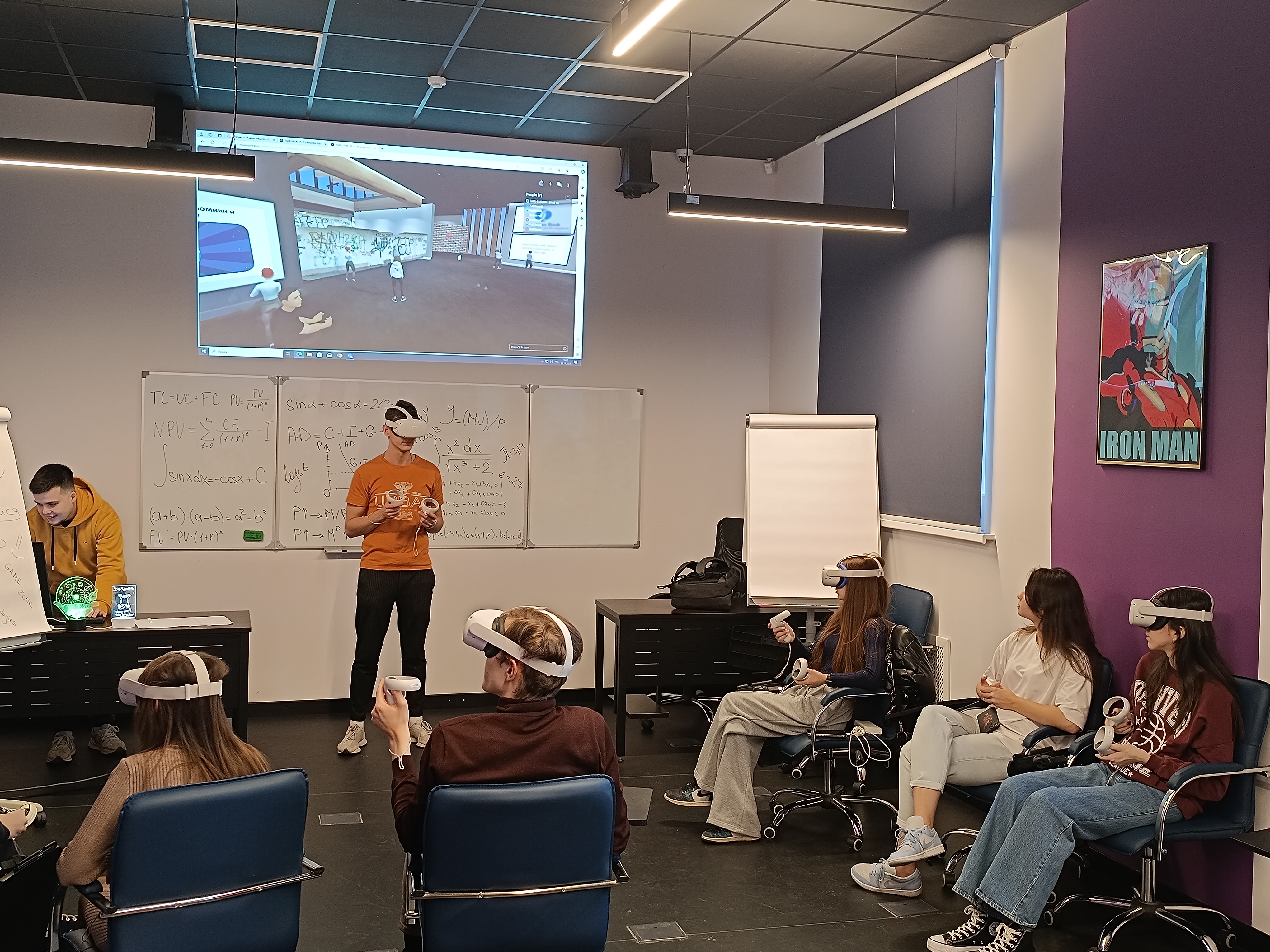 Студенты создали свое виртуальное пространство, наполнили его контентом по своей теме, разбавили цифры и графики дизайнерскими решениями — каждый студент с использованием VR-шлема мог превратить изучение темы в интересное компьютерное приключение.