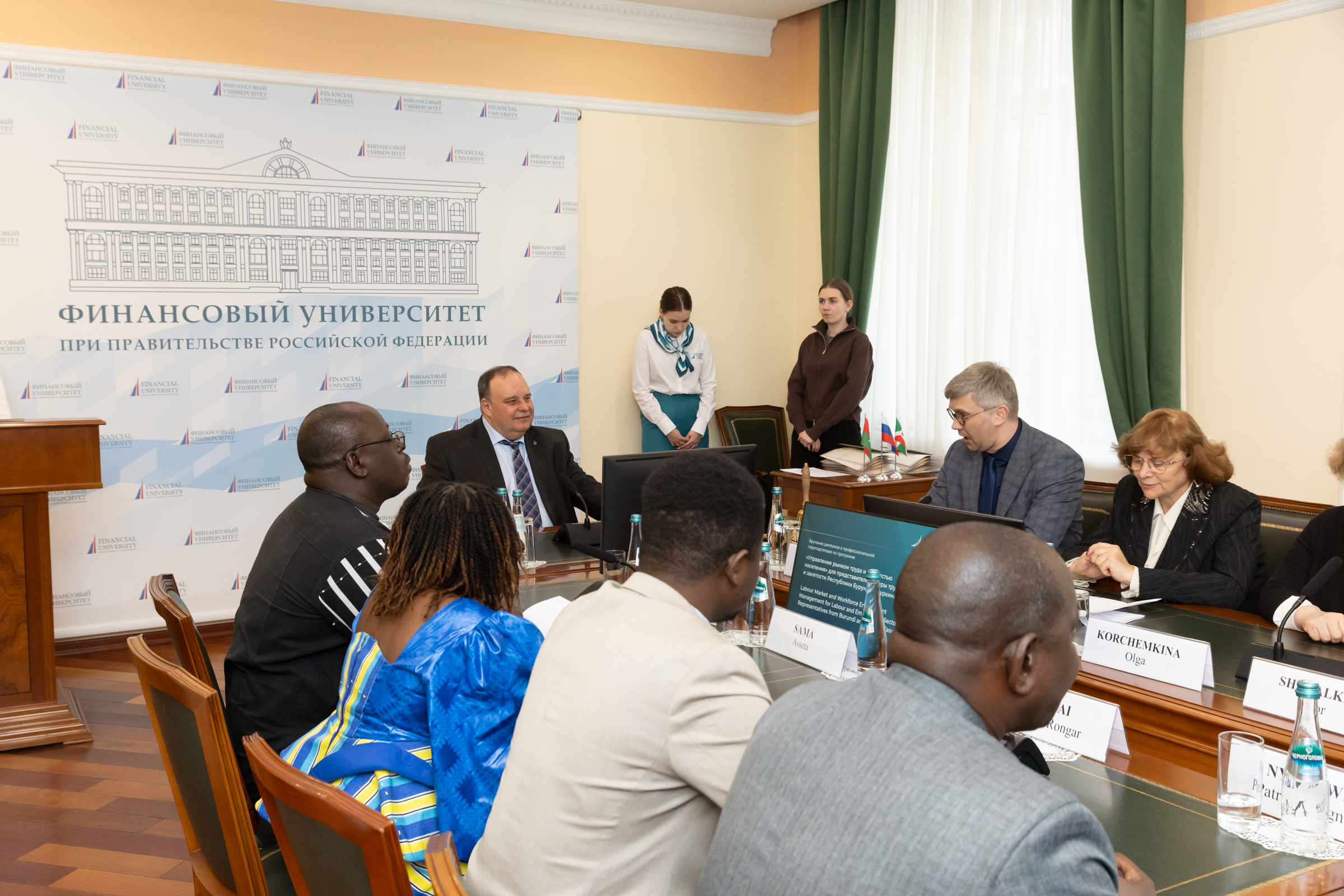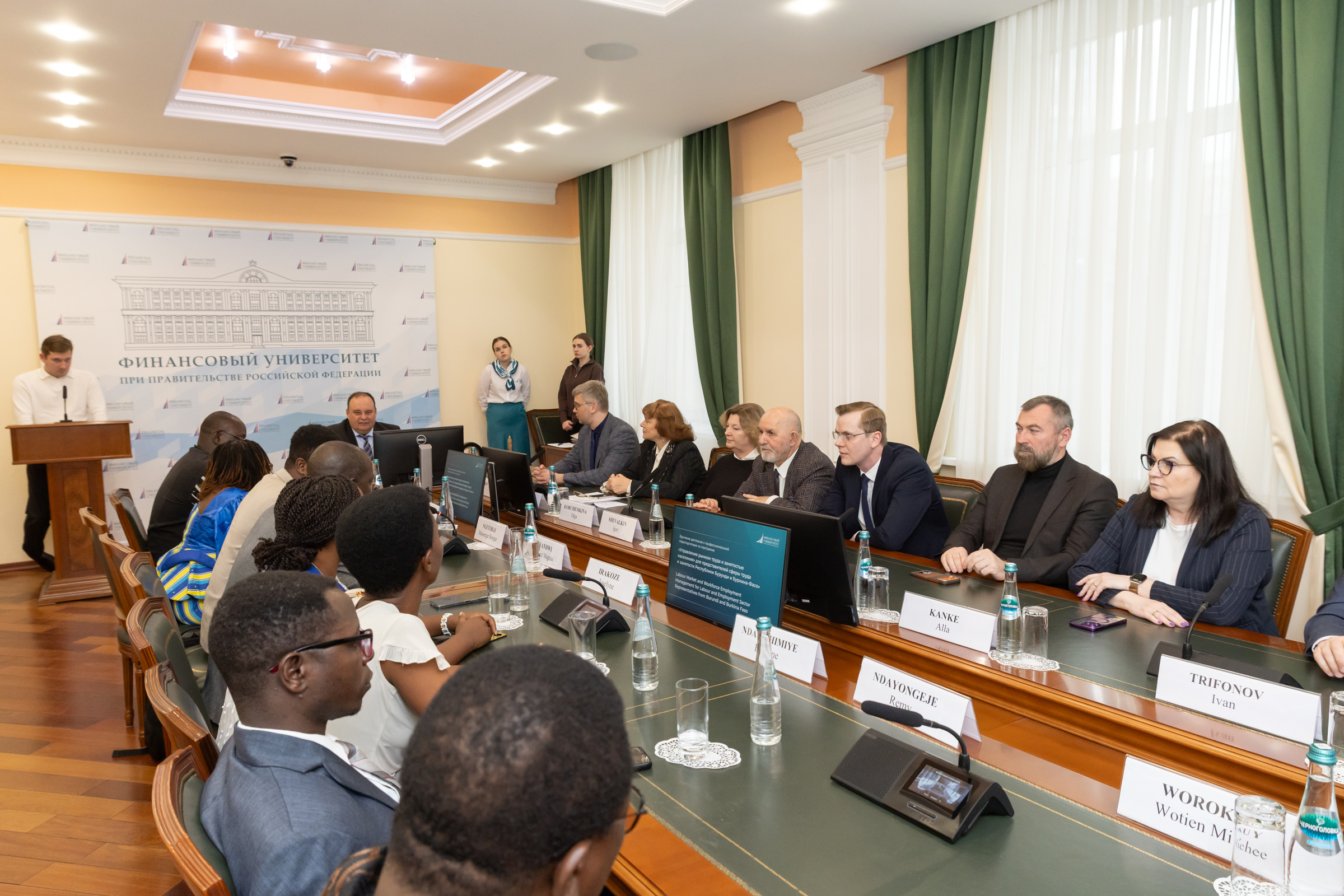 Ректор Финансового университета Станислав Прокофьев поздравил слушателей из Республики Бурунди и государства Буркина-Фасо с успешным окончанием программы: «Отрадно, что Финансовый университет реализует программу совместно с Федеральной службой по труду и занятости. Обучающиеся смогли глубже осмыслить современные вызовы и тенденции в сфере рынка труда, занятости и его регулирования. Эксперты Финансового университета отметили высокий уровень подготовки слушателей, профессионализм и глубокое понимание затрагиваемых тем. Благодарю вас за то, что для обучения вы выбрали именно наш университет. Мы всегда рады видеть вас вновь в стенах Финансового университета!»