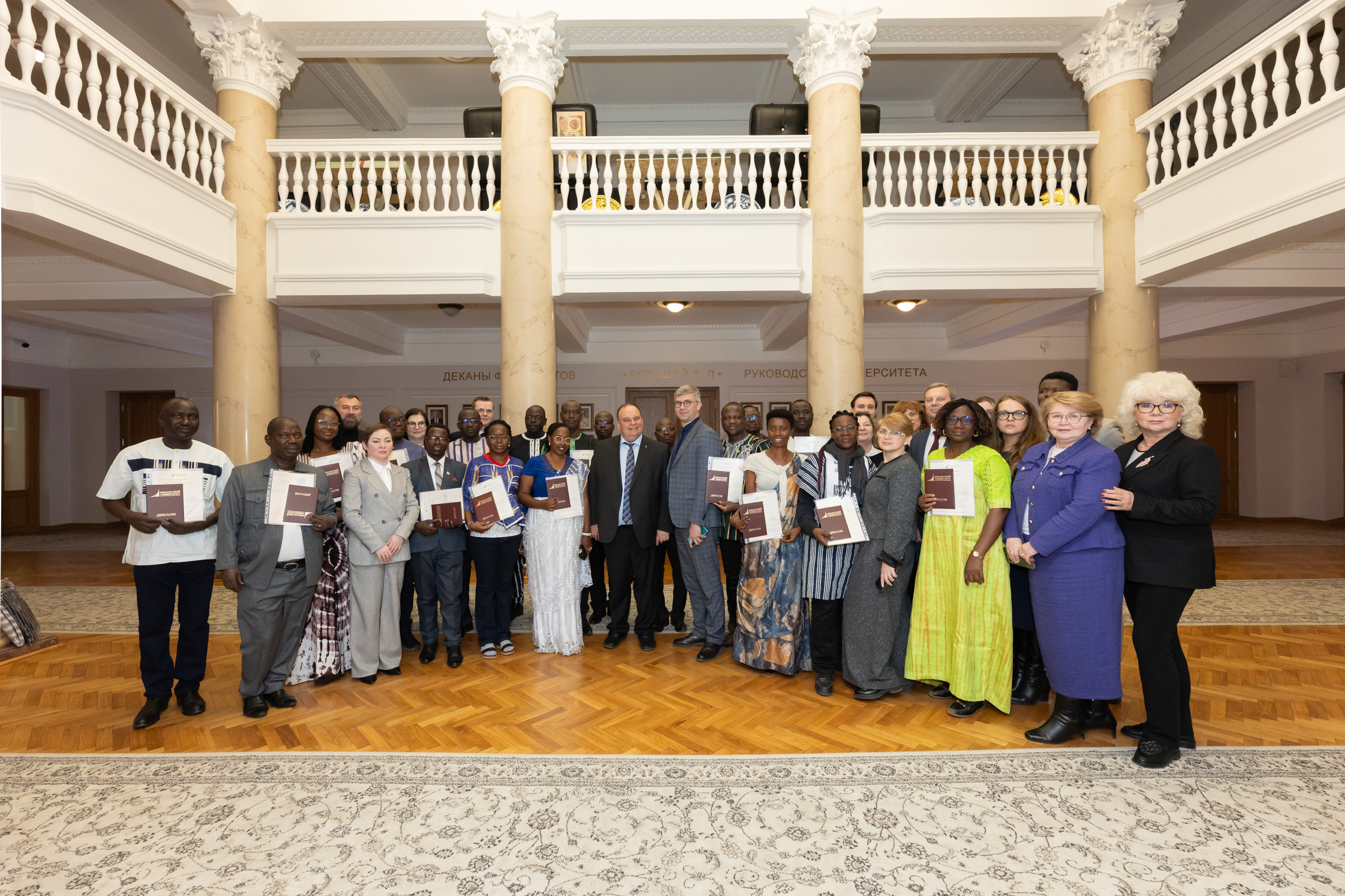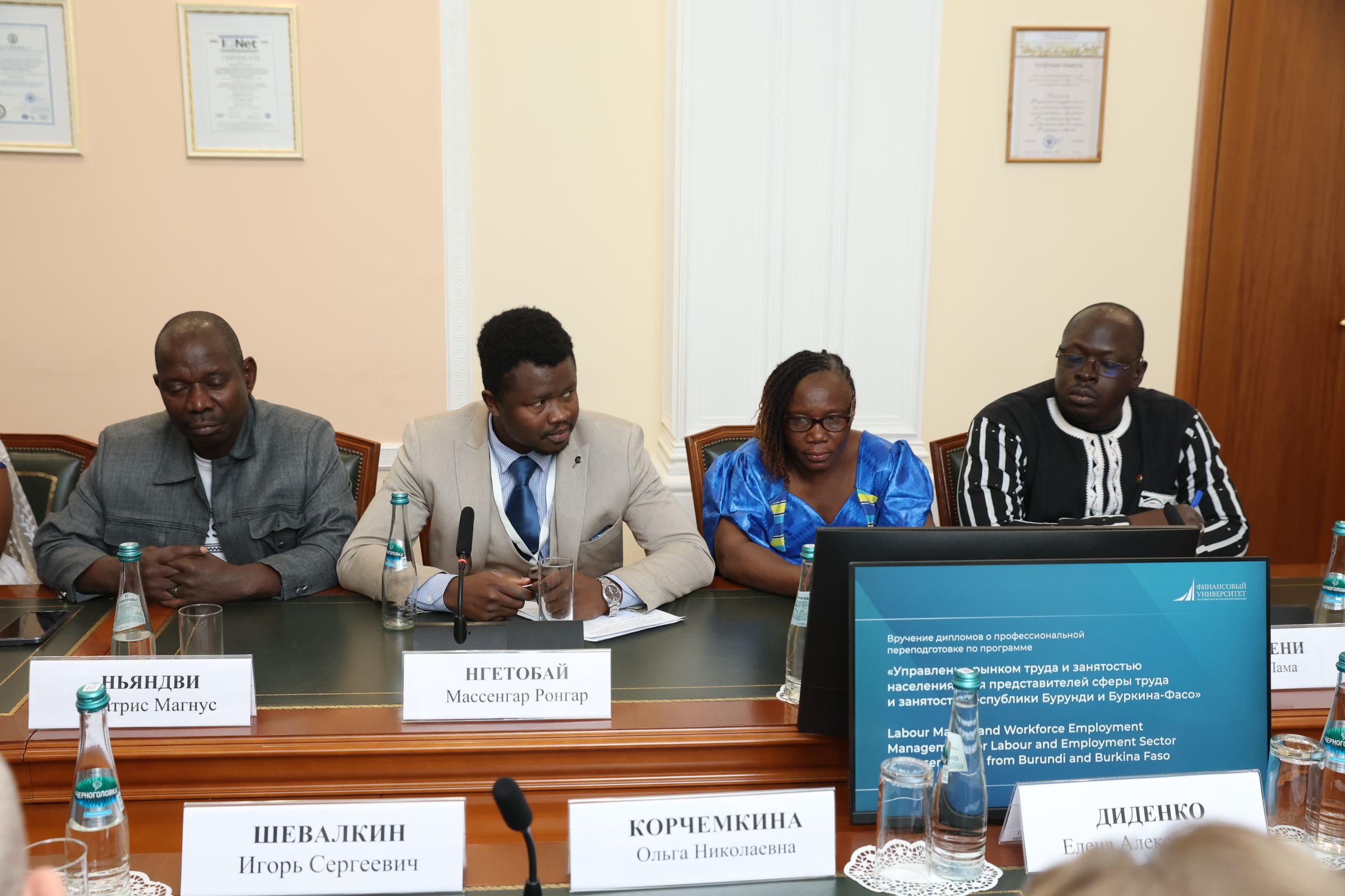 14 апреля 2026 года в Финансовом университете состоялось вручение дипломов о профессиональной переподготовке слушателям из Республики Бурунди и государства Буркина-Фасо, завершившим обучение по программе «Управление рынком труда и занятости населения». Программа реализована штабом ДПО Финансового университета и Международной школой бизнеса (МШБ), при активном содействии Федеральной службы по труду и занятости (Роструд).