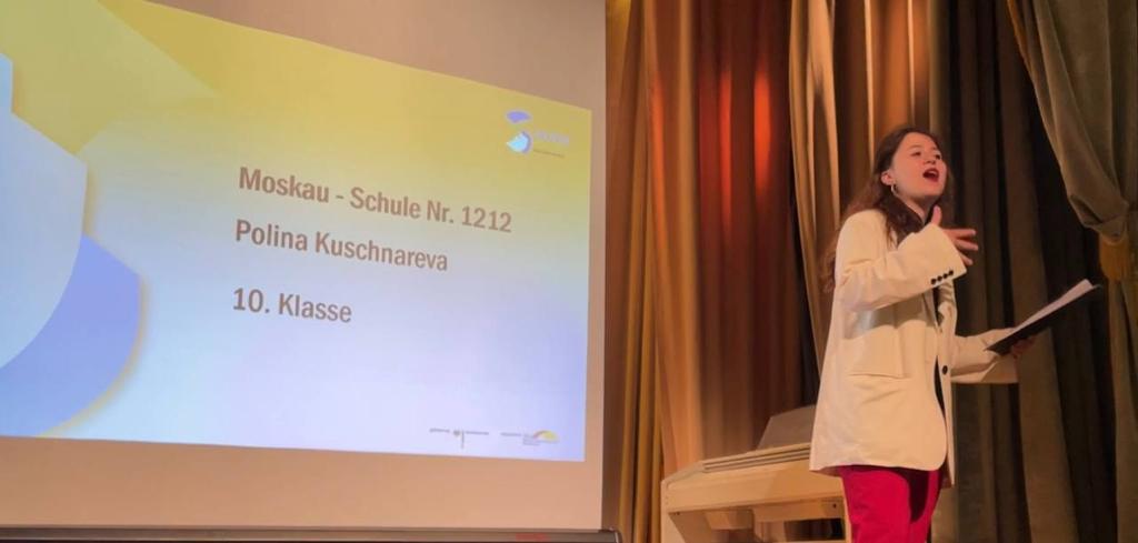 Так, например, 12 мая в Санкт-Петербурге состоялся финал международного конкурса по литературе «Страница за страницей – Твой проект по книге/Seitenweise – Dein Projekt zum Buch», где победительница регионального этапа Кушнарёва Полина, ученица 10 Б класса «Школы 1212 Щукино», представляла проект международному жюри и заняла 2-е место!