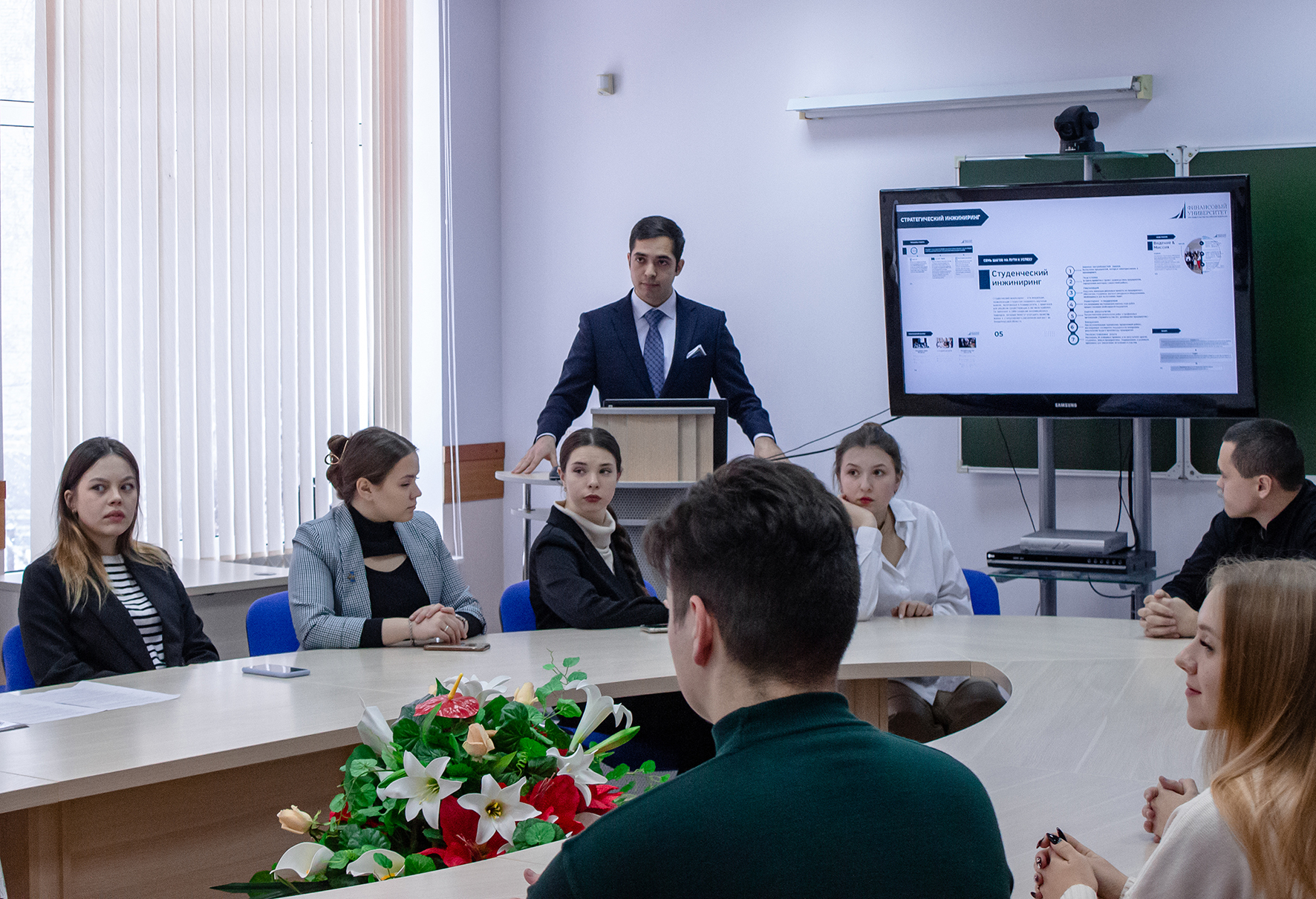 Программу визита продолжила встреча со студенческим активом филиала. Ребята презентовали результаты реализованных проектов в образовательной, научной и творческой деятельности, а также представили идеи собственных стартапов. Станислав Прокофьев высоко оценил инициативы студентов и дал рекомендации по их дальнейшей реализации, особо отметив проект производства одежды, украшенной элементами шрифта Брайля.