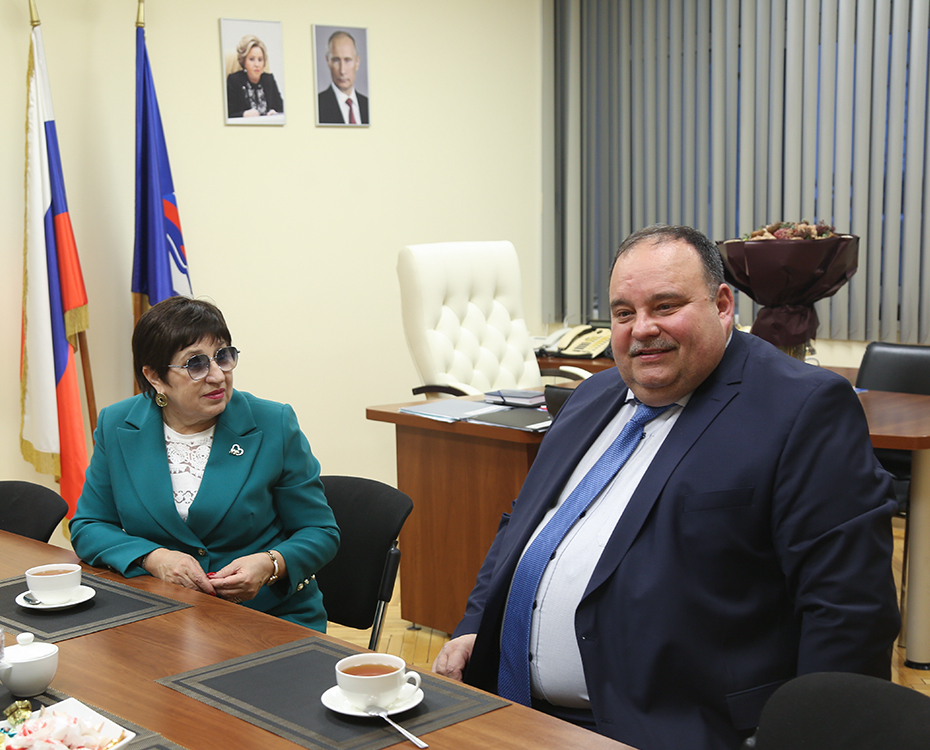 Также ректор Финансового университета провел переговоры с председателем Законодательного Собрания Владимирской области Ольгой Хохловой, в ходе которых стороны обсудили возможности и перспективы сотрудничества в сфере науки и образования, обозначили важные проекты, направленные на повышение квалификации молодых специалистов. Станислав Прокофьев отметил важность обмена опытом и выступил с предложением о запуске цикла открытых лекций экспертов Законодательного Собрания региона на базе филиала вуза. В рамках встречи ректор Финансового университета представил результаты разработанного специалистами вуза рейтинга ответственного бизнеса и подчеркнул: Владимирская область стала пилотным регионом, внедрившим систему рейтингования предприятий по принципу ЭКГ (Экология, Кадры, Государство).