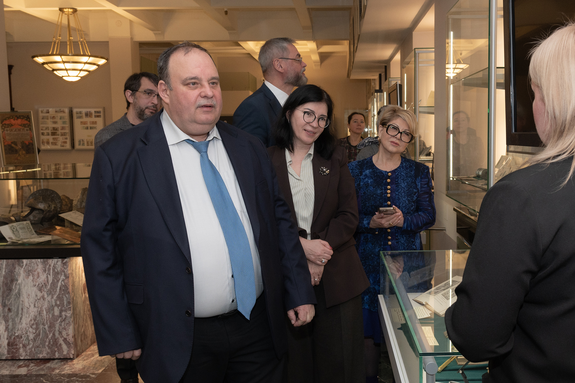 Завершилась встреча осмотром части коллекции Музея АО «Гознак», посвященной истории денежного обращения России и представленной в выставочном зале в Москве.