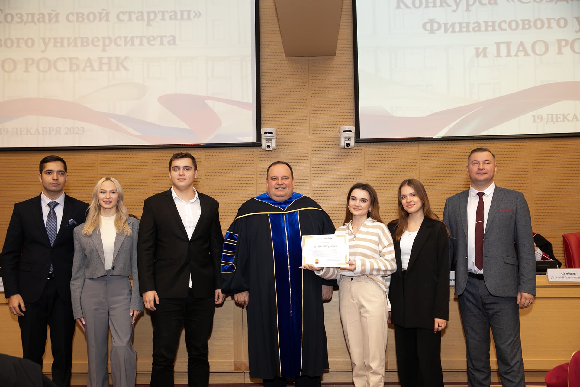 19 декабря 2023 года в рамках заседания Ученого совета Финансового университета состоялась торжественная церемония награждения победителей и призеров конкурса Финуниверситета и ПАО РОСБАНК «Создай свой стартап» – партнерской программы, нацеленной на поддержку молодежного предпринимательства в сфере устойчивого развития.