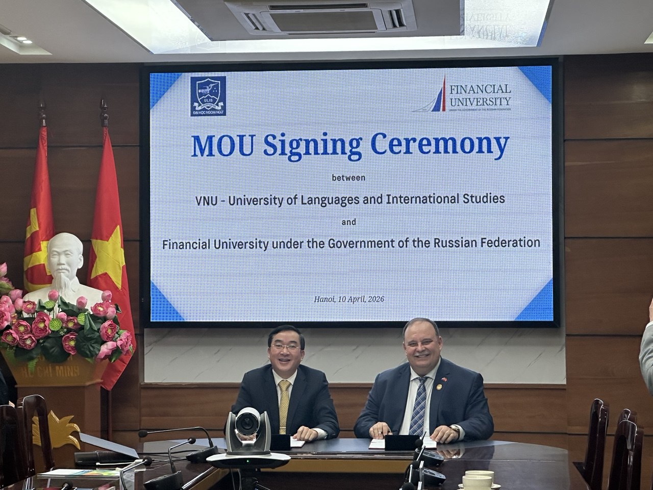 10 апреля 2026 года Финансовый университет и Университет языков и международных исследований Вьетнамского национального университета подписали соглашения о сотрудничестве и об академических обменах. Подписи на документах поставили ректор Финансового университета Станислав Прокофьев и президент Университета языков и международных исследований ВНУ, господин Нгуен Суан Лонг.