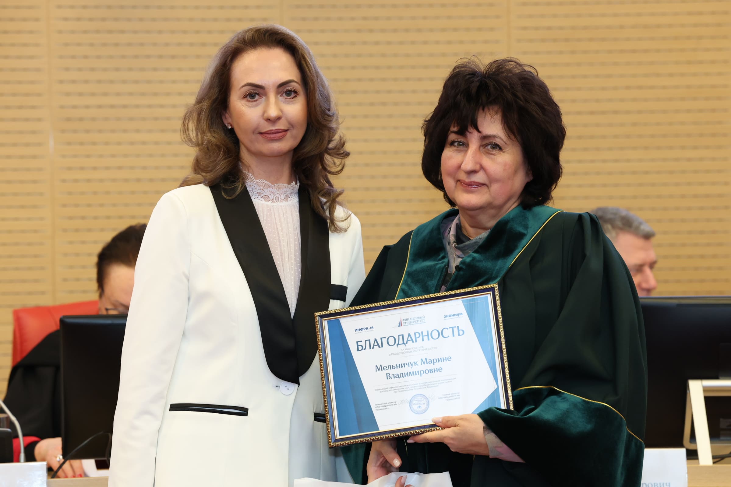 В начале заседания заместитель начальника Управления кадров Федеральной налоговой службы Валентина Лагирева вручила Благодарность руководителя Федеральной налоговой службы работникам Факультета налогов, аудита и бизнес-анализа: