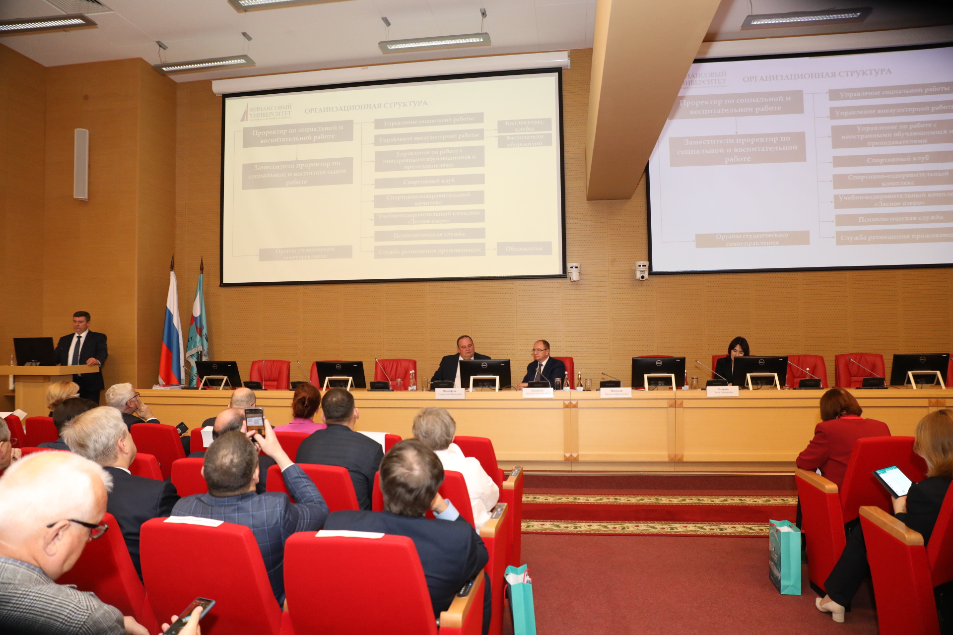 Проректор по социальной и воспитательной работе Финансового университета Александр Кожаринов представил структуру и основные направления деятельности управления внеаудиторной работы вуза. Особое внимание было уделено значимым инициативам органов студенческого самоуправления, в том числе адаптационному проекту для первокурсников «Координаторство», а также лучшим практикам в сфере патриотического воспитания молодежи. Дискуссию продолжили доклады представителей ведущих университетов, в ходе которых эксперты затронули широкий круг вопросов в сфере молодежной политики и обозначили наиболее актуальные механизмы работы со студентами.