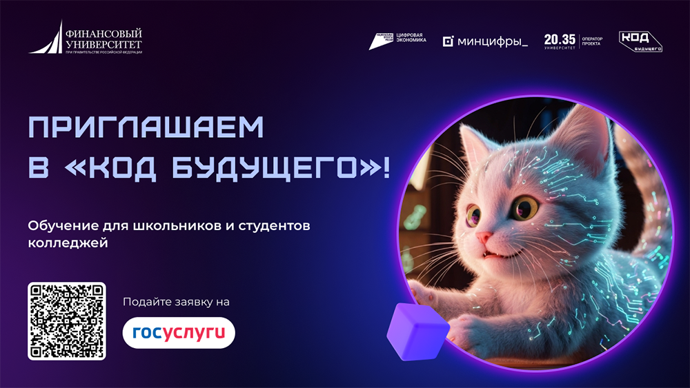 В Финансовом университете при Правительстве Российской Федерации с 15 октября 2025 года стартовал масштабный государственный образовательный проект «Код будущего». Проект проводится Министерством цифрового развития, связи и массовых коммуникаций Российской Федерации в рамках федерального проекта «Развитие кадрового потенциала ИТ-отрасли» национальной программы «Цифровая экономика Российской Федерации».