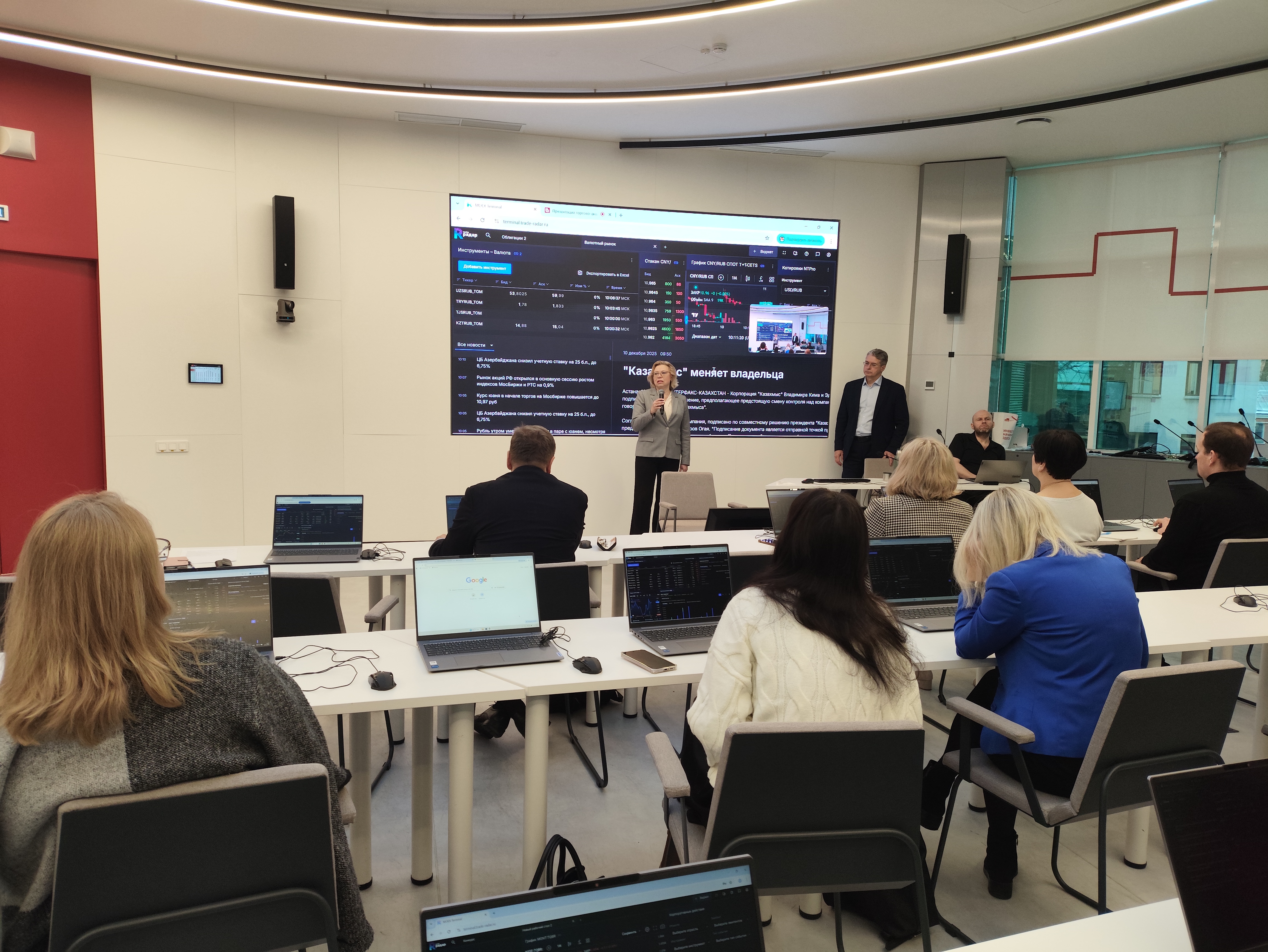 Практикум был структурирован в две сессии. Первая, предназначалась для руководителей структурных подразделений – деканов и заведующих кафедрами. В рамках этой сессии эксперты Московской Биржи акцентировали внимание на стратегических аспектах интеграции платформ в учебные программы и исследовательские проекты. Второй, открытый блок, был посвящен детальному разбору функциональных возможностей решений и решению конкретных практических кейсов, что вызвало живой интерес у широкого круга преподавателей вуза.