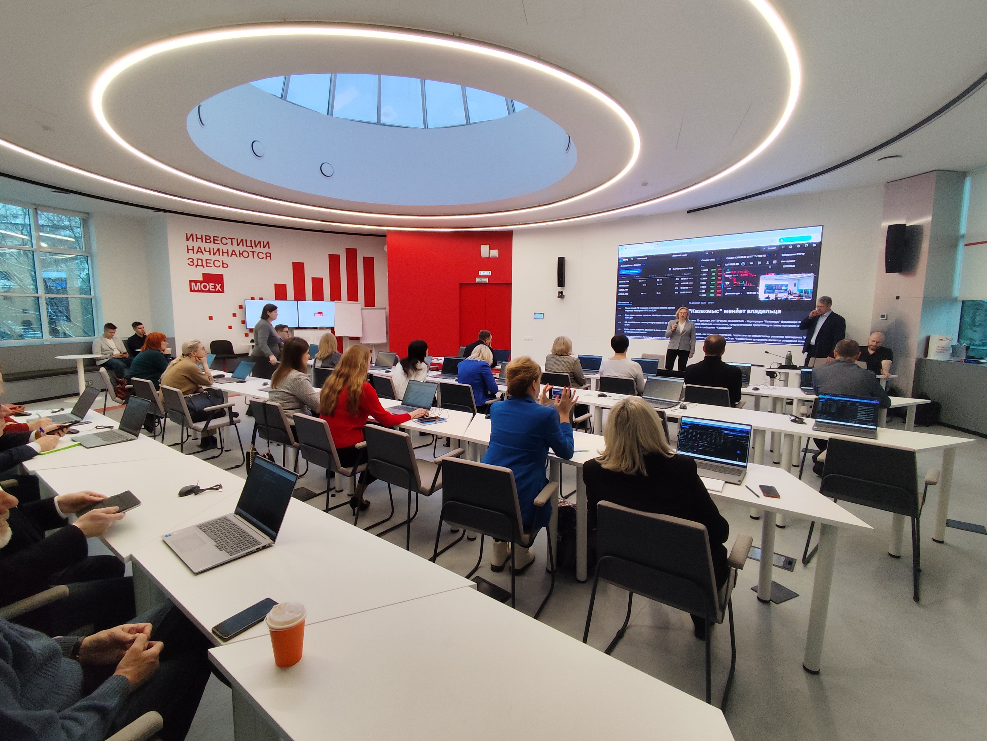 10 декабря 2025 года на площадке Цифровой учебной биржи MOEX LAB Кафедры финансовых рынков и финансового инжиниринга Финансового университета эксперты ПАО «Московская Биржа» провели специализированный практикум, посвященный использованию профессиональных аналитических и торговых систем в академической и научной работе. Мероприятие, организованное в гибридном формате, собрало очно и онлайн более 70 участников — руководителей ключевых кафедр, преподавательский состав и представителей региональных филиалов вуза.