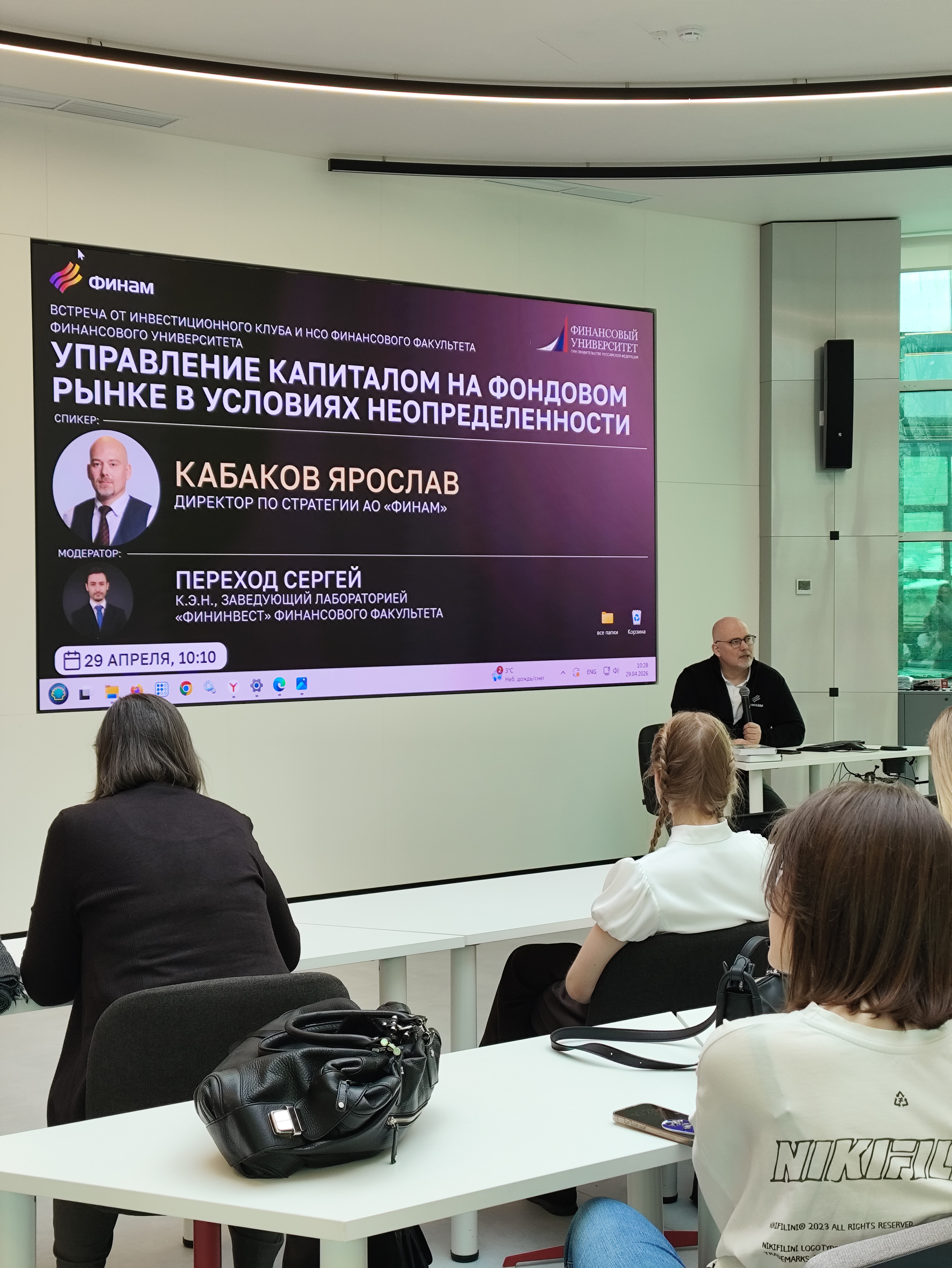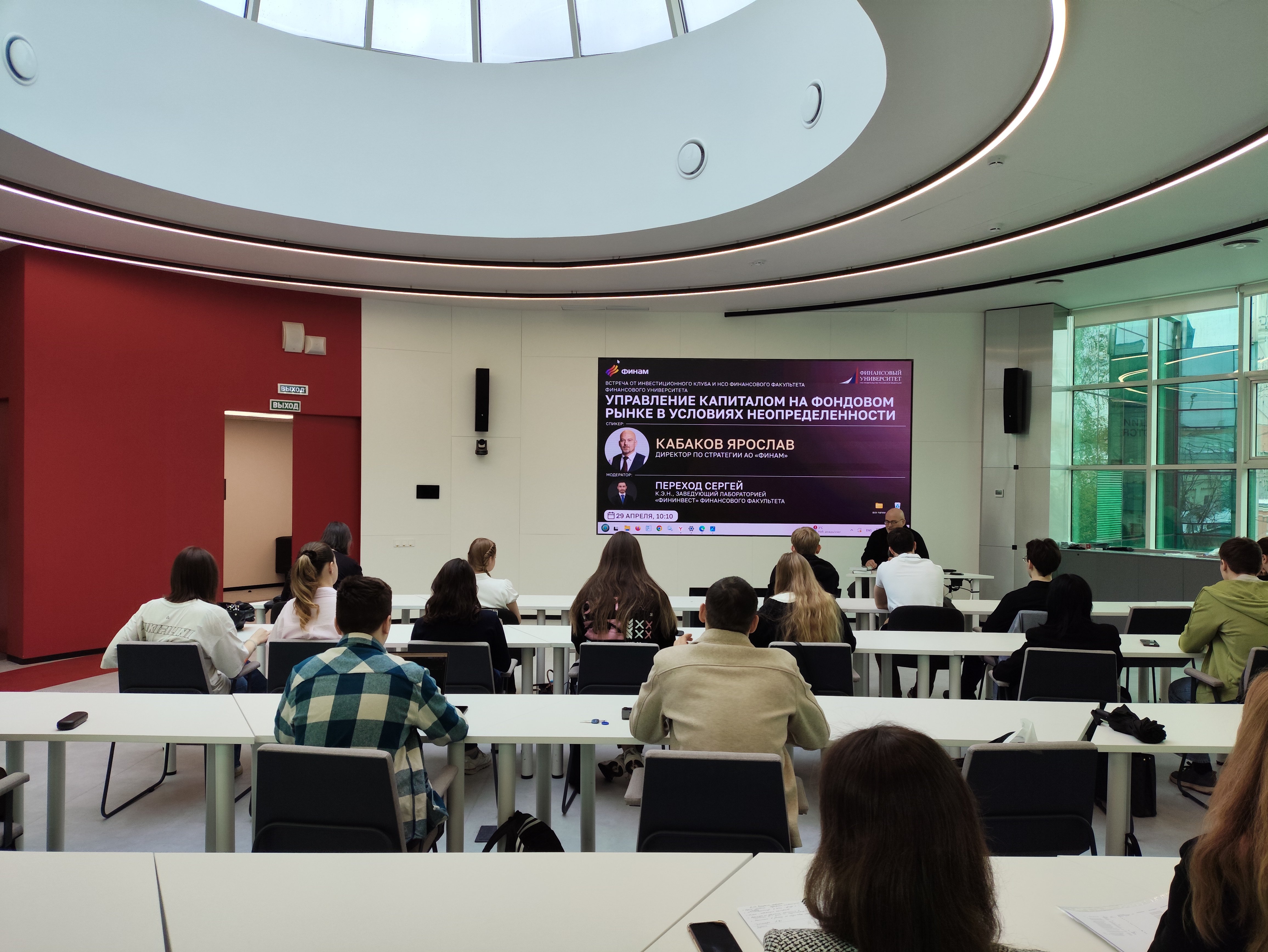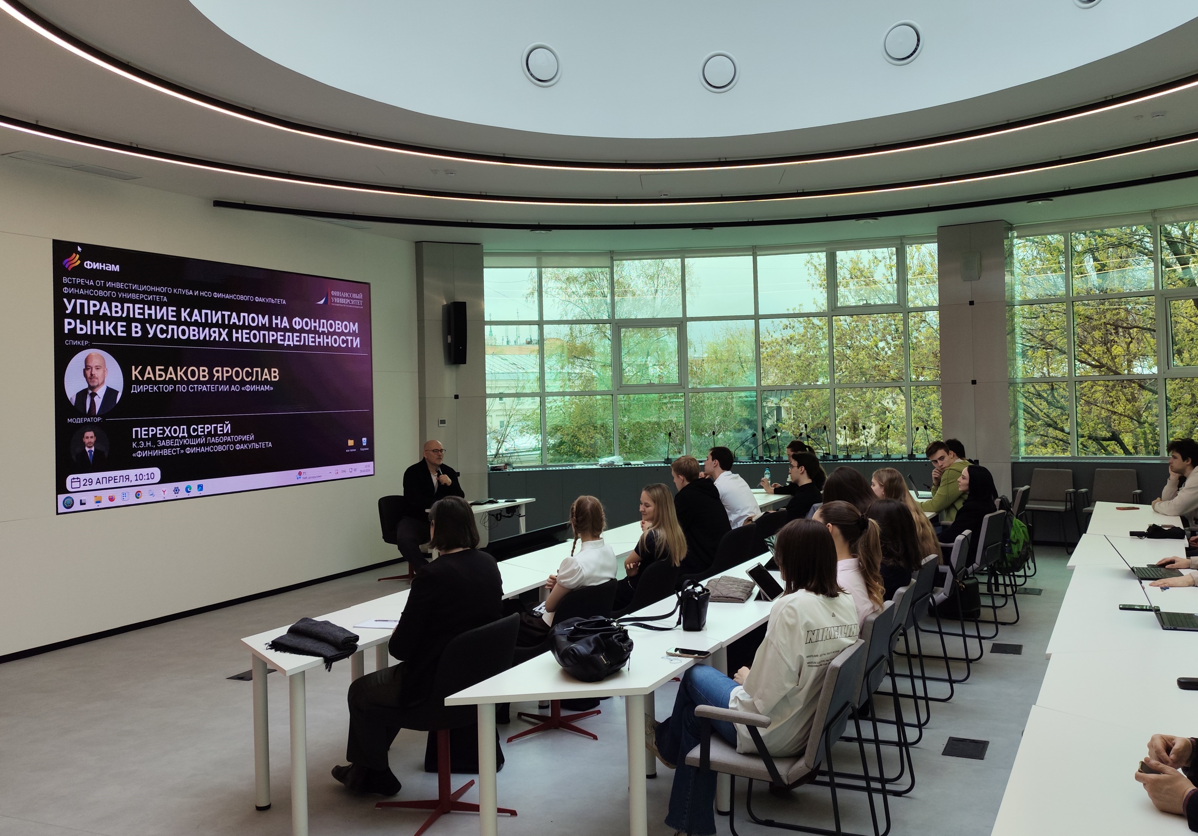 29 апреля в Цифровой учебной бирже MOEX LAB Финансового университета при Правительстве Российской Федерации состоялась встреча Межвузовского инвестиционного клуба на тему «Управление капиталом на фондовом рынке в условиях неопределенности». Мероприятие прошло в рамках федерального проекта «Развитие финансового рынка» и организовано Кафедрой финансовых рынков и финансового инжиниринга совместно с Министерством финансов Российской Федерации.