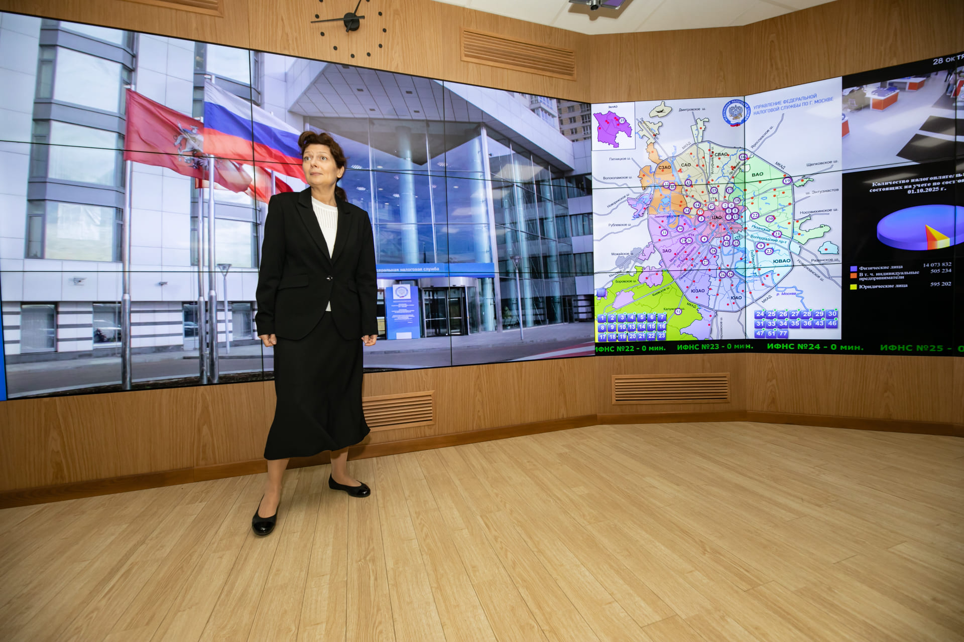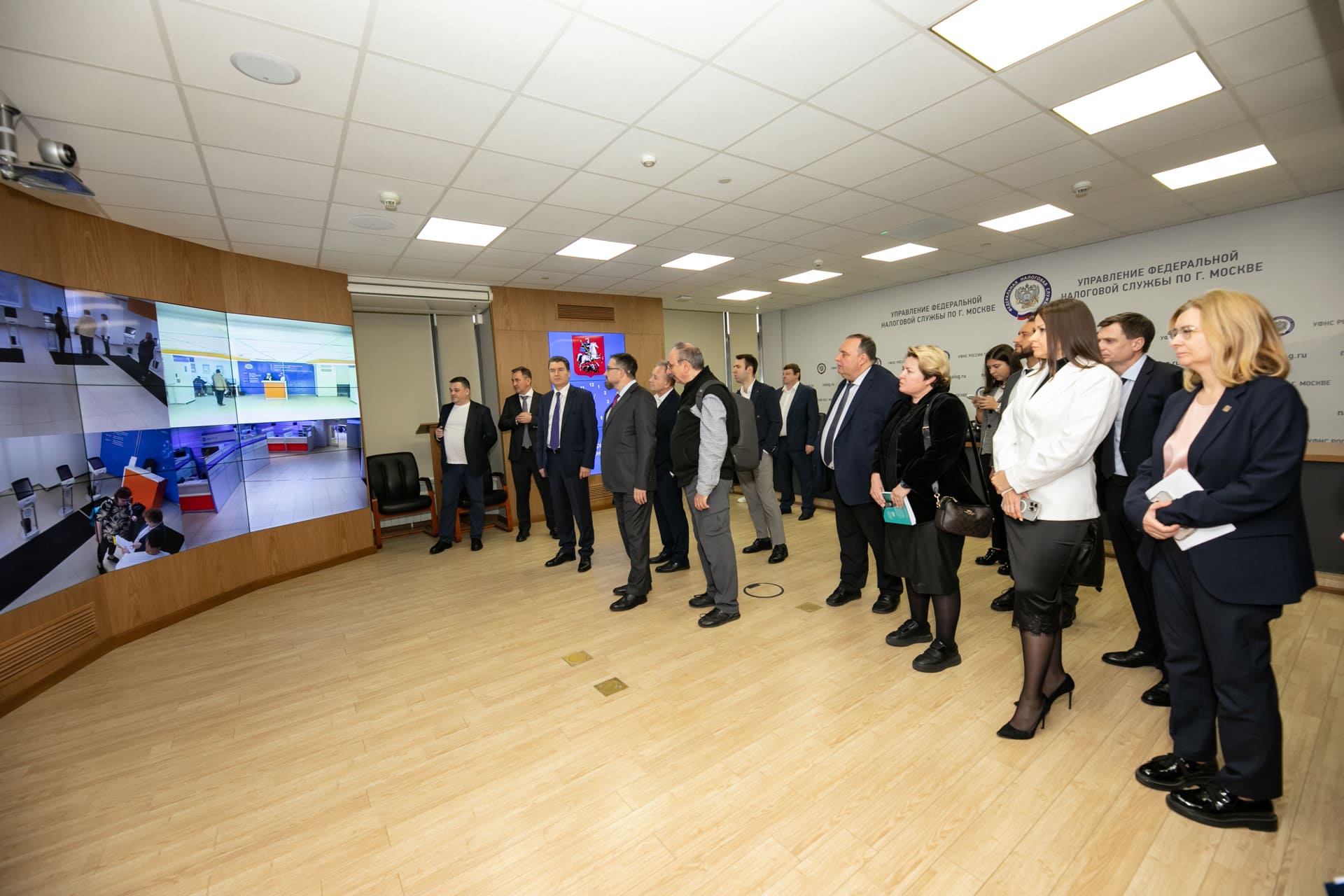 В завершение заседания члены Общественного совета при ФНС России ознакомились с работой ситуационного центра УФНС по городу Москве и единого контакт-центра ФНС России. В ситуационном центре гостям продемонстрировали возможности мониторинга деятельности столичных инспекций в режиме реального времени с помощью интерактивной карты. Контакт-центр предоставляет информацию по широкому спектру решаемых задач — от информирования о сроках уплаты налогов и отчетности до консультаций по налоговым льготам, вычетам и работе электронных сервисов ФНС России.