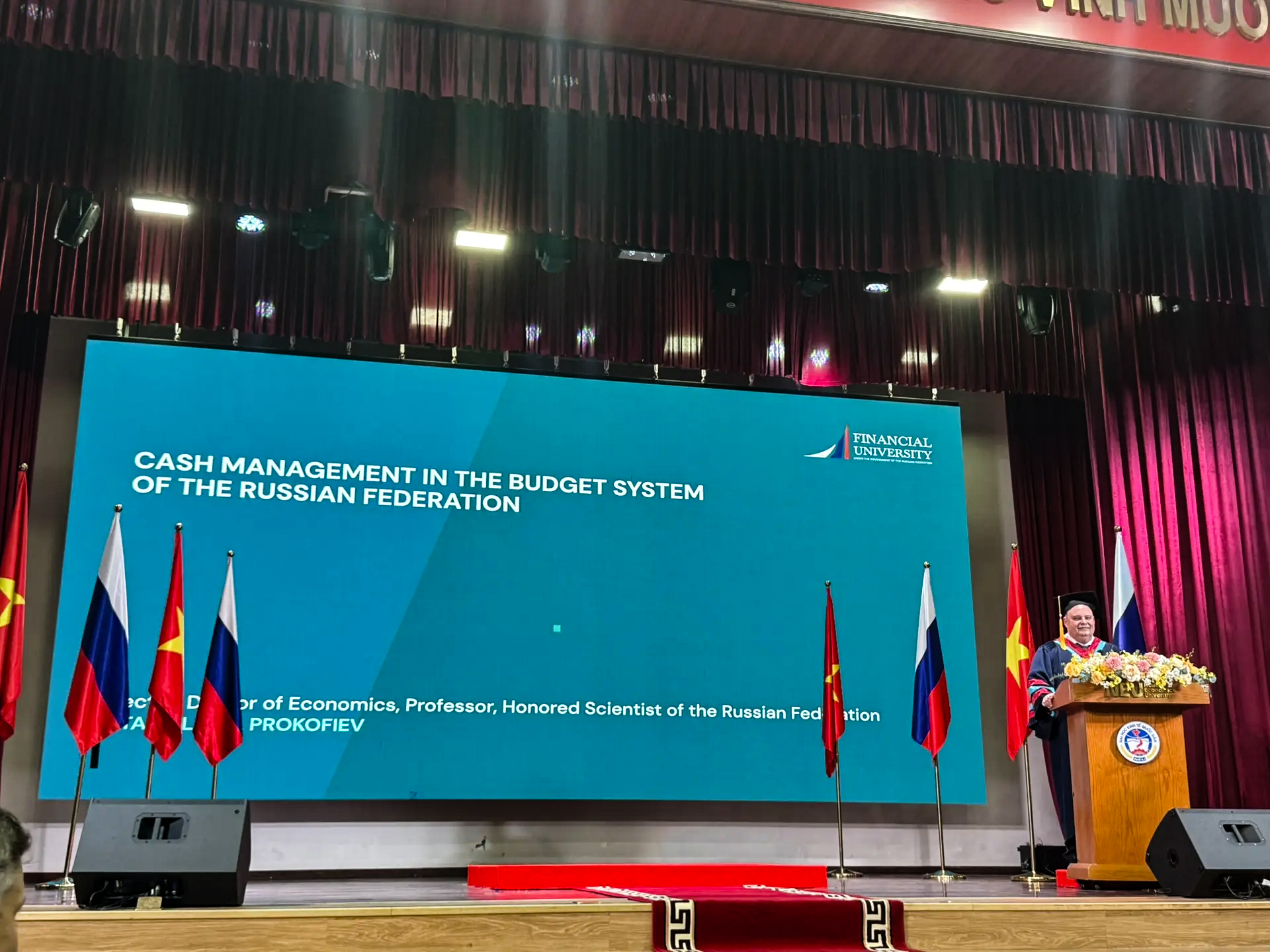 В рамках визита Станислав Прокофьев также выступил с открытой лекцией на тему «Кэш-менеджмент в бюджетной системе Российской Федерации» для студентов и преподавателей Национального экономического университета Вьетнама.