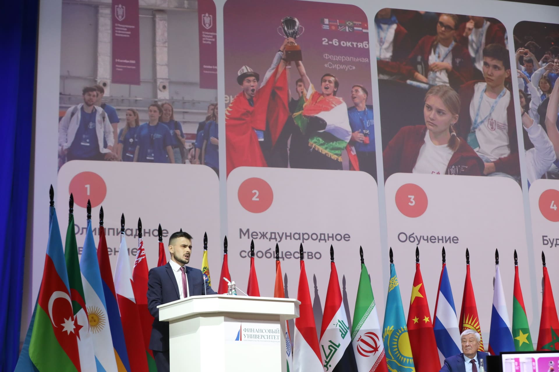 В президиум учредительной конференции вошли Заместитель Председателя Правительства Российской Федерации Дмитрий Чернышенко и директор Росфинмониторинга Юрий Чиханчин. В числе участников мероприятия – Заместитель министра науки и высшего образования Российской Федерации Дмитрий Афанасьев, ректор Финансового университета Станислав Прокофьев, ректор НИЯУ МИФИ Владимир Шевченко, ректор РУДН Олег Ястребов, представители международных организаций и студенты из 36 стран – участниц Международной олимпиады по финансовой безопасности. Модератором учредительной конференции выступила проректор по учебной и методической работе Финансового университета Екатерина Каменева.