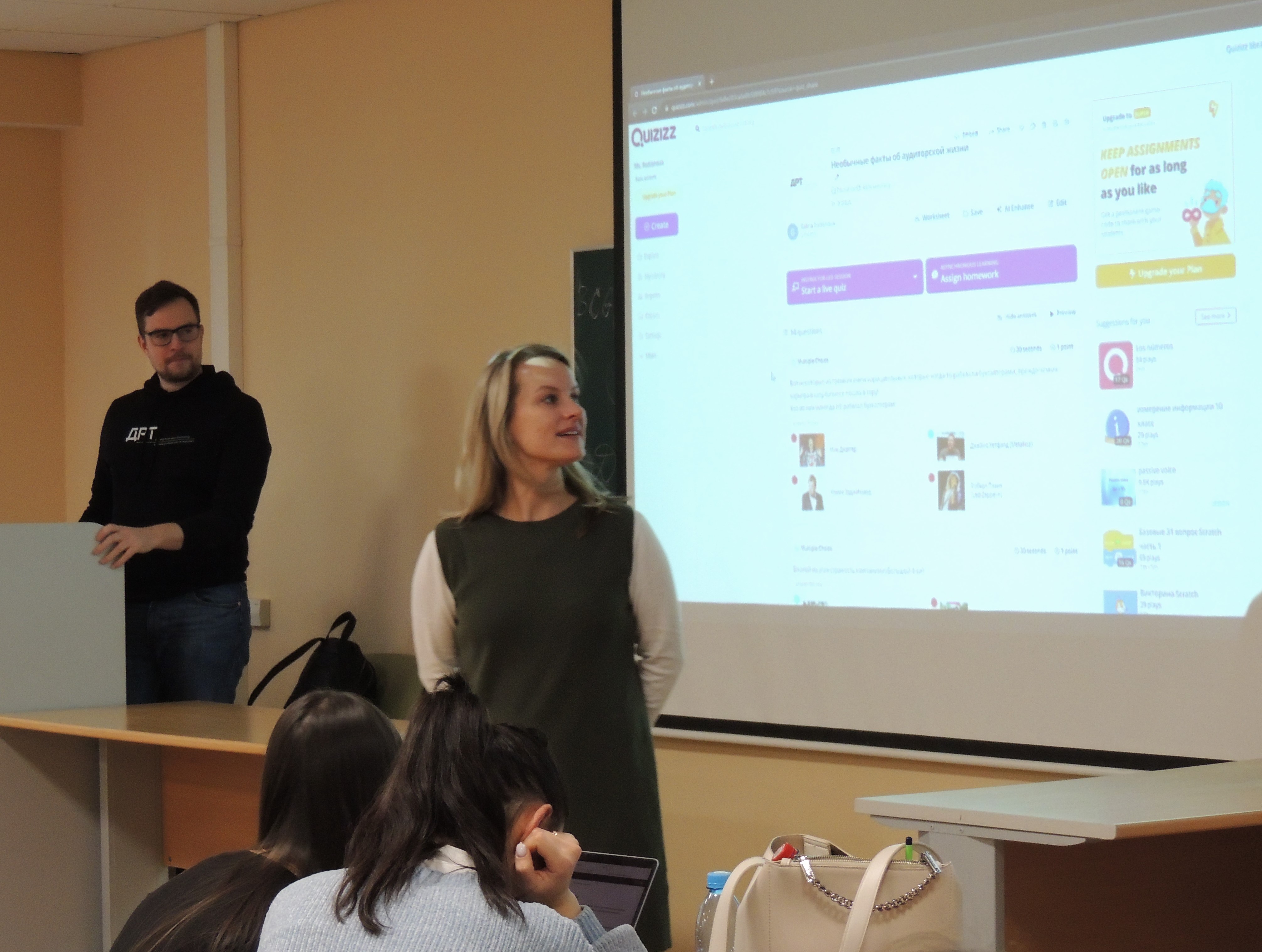 13 октября представители компании ДРТ – Дамир Абдуллин и Екатерина Лебедева на встрече со студентами 4 курса рассказали о возможности прохождения оплачиваемых стажировок в компании, карьерном развитии молодого специалиста, условиях достижения быстрого профессионального роста. Активный интерес студентов к теме встречи выразился в многочисленных вопросах по процедуре отбора, прохождения стажировок, перспективах и условиях трудоустройства в компанию ДРТ.