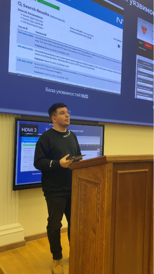 3 и 5 декабря 2024 года компания R-Vision провела для студентов Кафедры информационной безопасности Финансового университета при Правительстве Российской Федерации лекции на тему "Сканирование уязвимостей", "Сравнительный анализ форматов предоставления информации об уязвимостях. Инструменты сканирования" . Во встрече приняли участие около 150 студентов 4-го и 3-го курса, обучающихся по специальности 10.03.01 «Информационная безопасность».