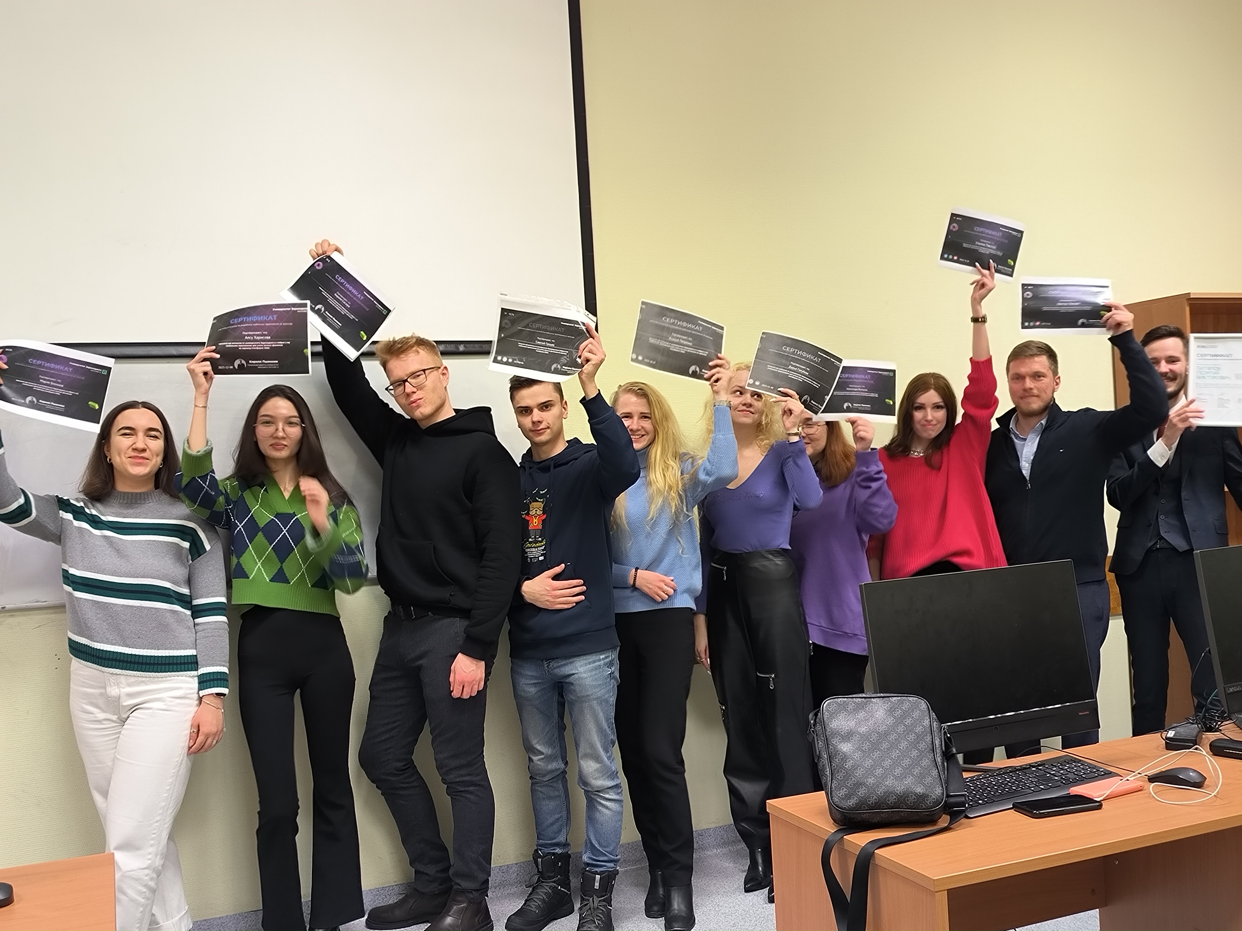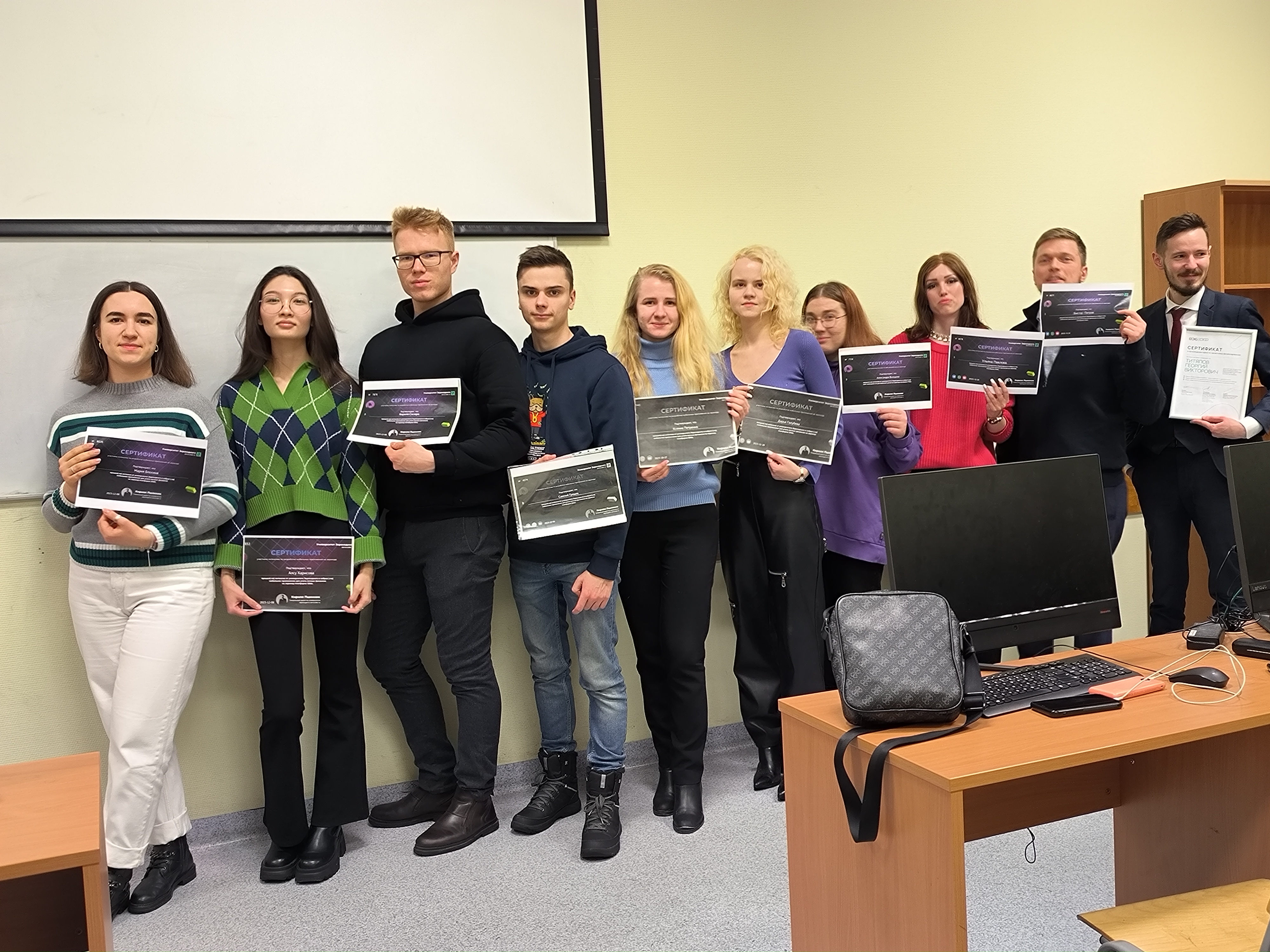 По этому направлению в течение первого полугодия 2023/2024 учебного года наши магистранты группы КФвЦЭ 23-1м дополнительно к основному учебному процессу прошли обучение в ВЭБ РФ, СберУниверситете, АНО ДПО «Образовательные технологии Яндекса», Университете Зерокодинга и получили сертификаты (всего 21 сертификат), подтверждающие оценку полученных квалификаций.