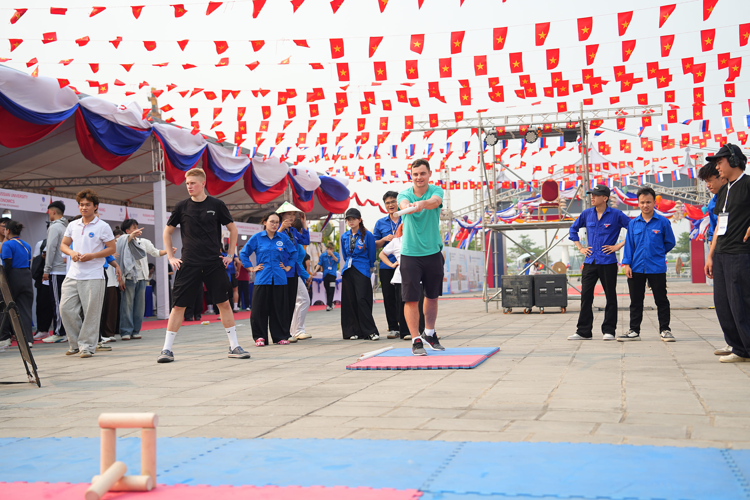 Фестиваль культуры и спорта проводится с целью развития и популяризации российско-вьетнамской культуры, укрепления дружественных связей между студенческой молодежью двух стран и создания единого пространства для межкультурного диалога. Студенты Финансового университета под руководством директора Спортивного клуба вуза Сергея Гаврилова представили древнюю русскую игру «Городки» — корпоративный вид спорта Финуниверситета, сочетающий филигранную технику, точность и глубокое уважение к истории. У вьетнамских студентов и преподавателей была уникальная возможность попробовать свои силы в этой игре и открыть для себя новые грани русской культуры.