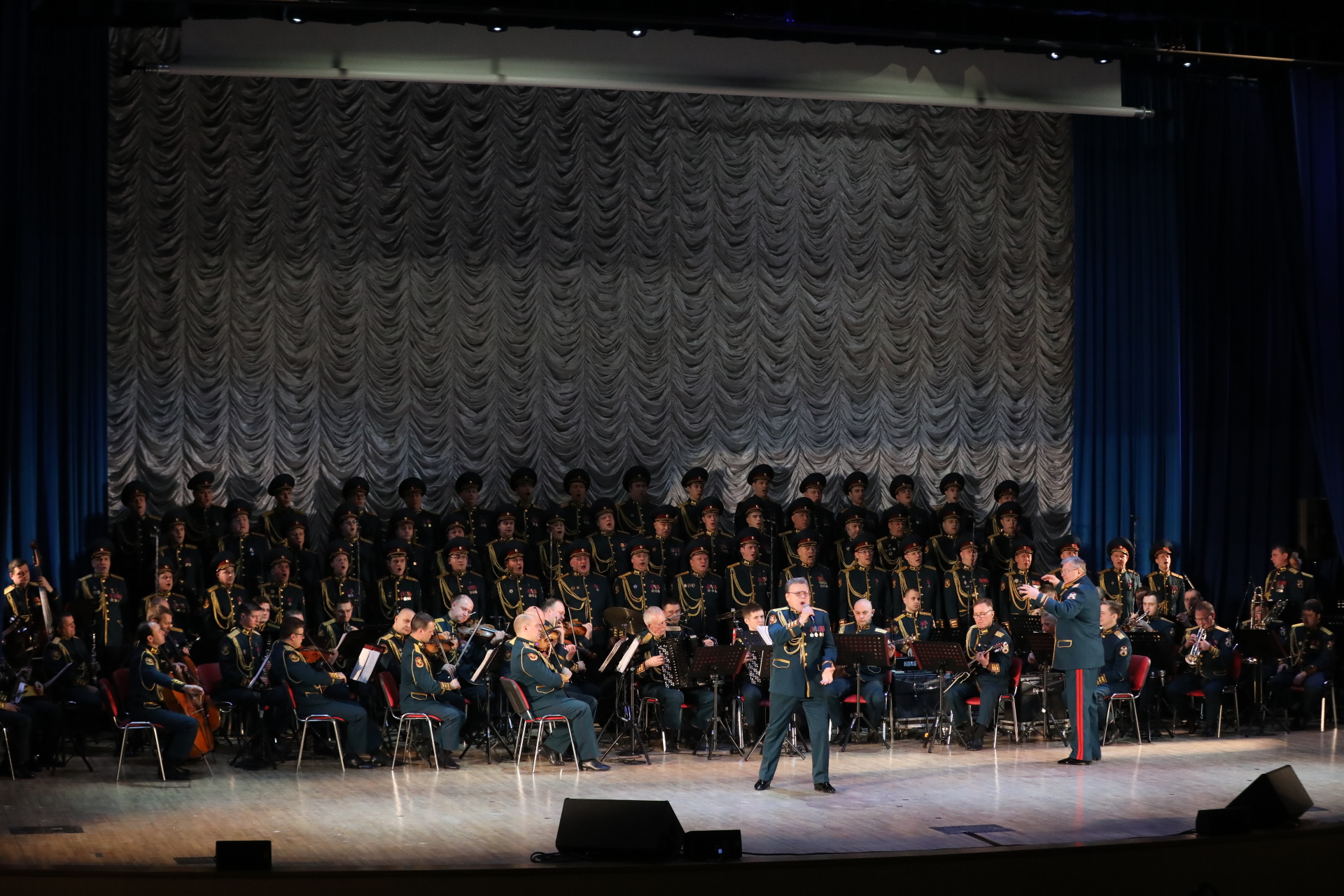 В честь юбилея Финансового университета состоялся праздничный концерт с участием Академического ансамбля песни и пляски войск национальной гвардии Российской Федерации.