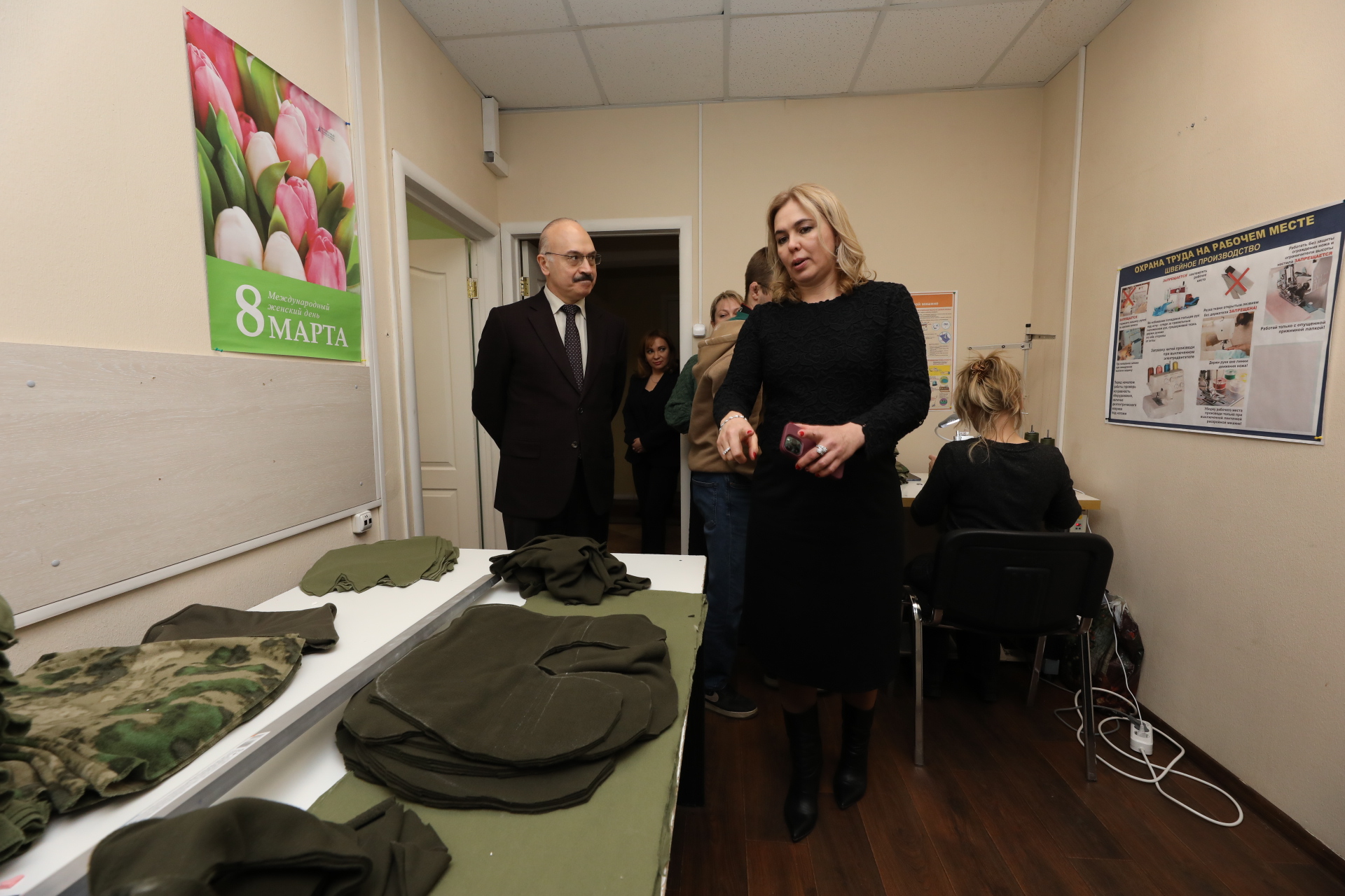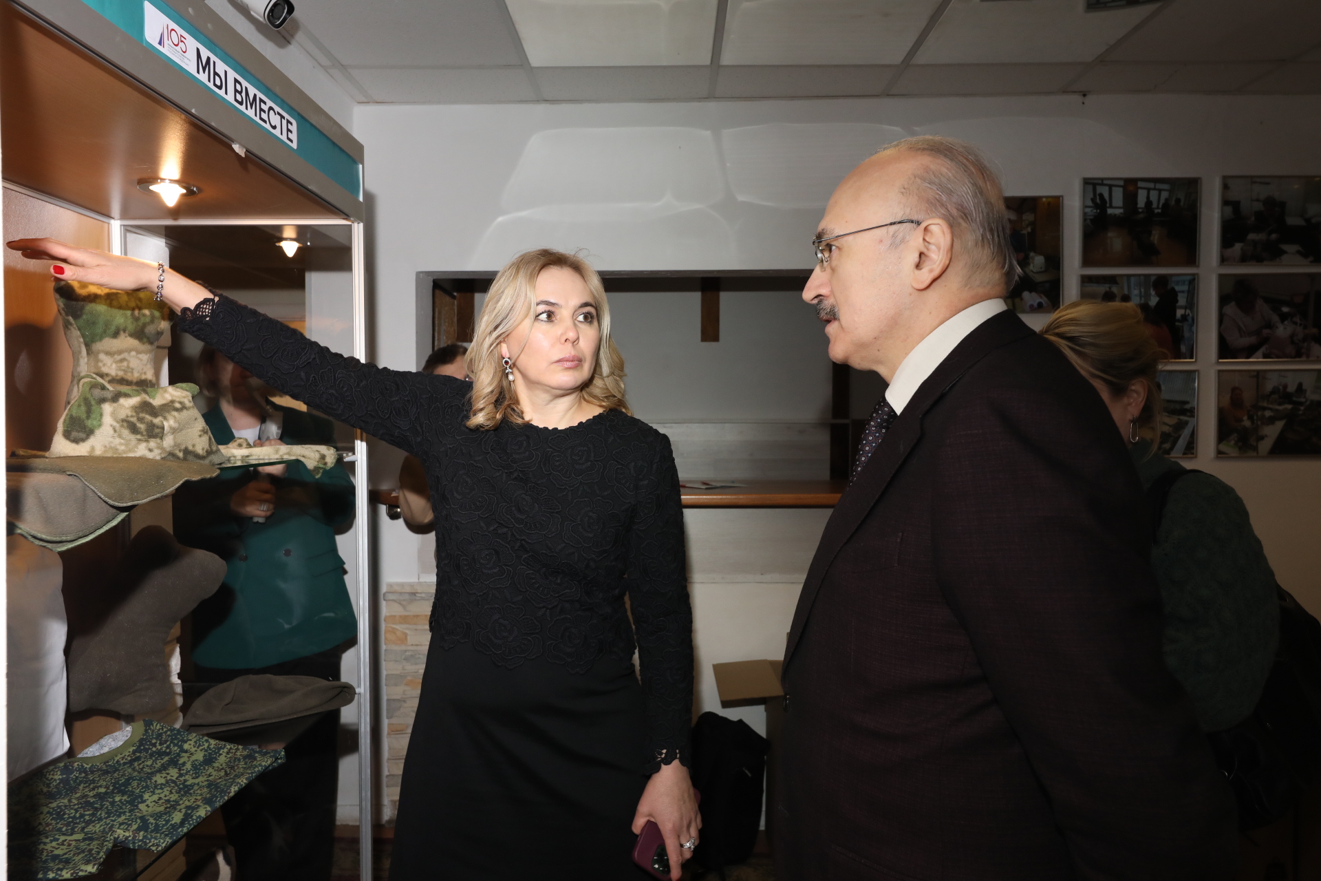 Декан факультета Гульнара Ручкина провела для депутата экскурсию по учебным аудиториям, а также показала швейный цех по пошиву изделий для бойцов СВО. С ноября прошлого года в специально оборудованном помещении неравнодушные студенты, преподаватели и сотрудники университета на добровольной основе шьют всесезонные шапки под шлемы, футболки, подушки-«подковы» и подушки-косточки для бойцов СВО. Более 700 изделий уже отправлены бойцам в части и прифронтовые госпитали.