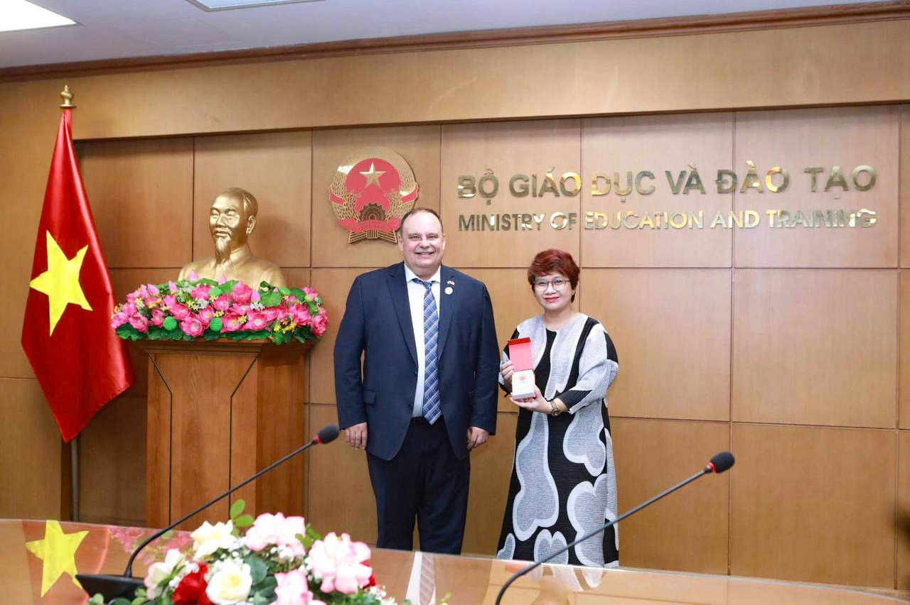 Директор Международного департамента Министерства образования и подготовки кадров Социалистической Республики Вьетнам Нгуен Тху Тхюи вручила памятную медаль Министерства образования и подготовки кадров СРВ за вклад в развитие образования Вьетнама ректору Финансового университета Станиславу Прокофьеву. Наградами Министерства образования и подготовки кадров СРВ за вклад в развитие образования Вьетнама также были отмечены заместитель декана по связям с российскими и международными партнерами Финансового факультета вуза Лилия Приходько и Посол российского образования во Вьетнаме, главный специалист Управления международной деятельности Финансового университета То Тхи Туиет Кхань.