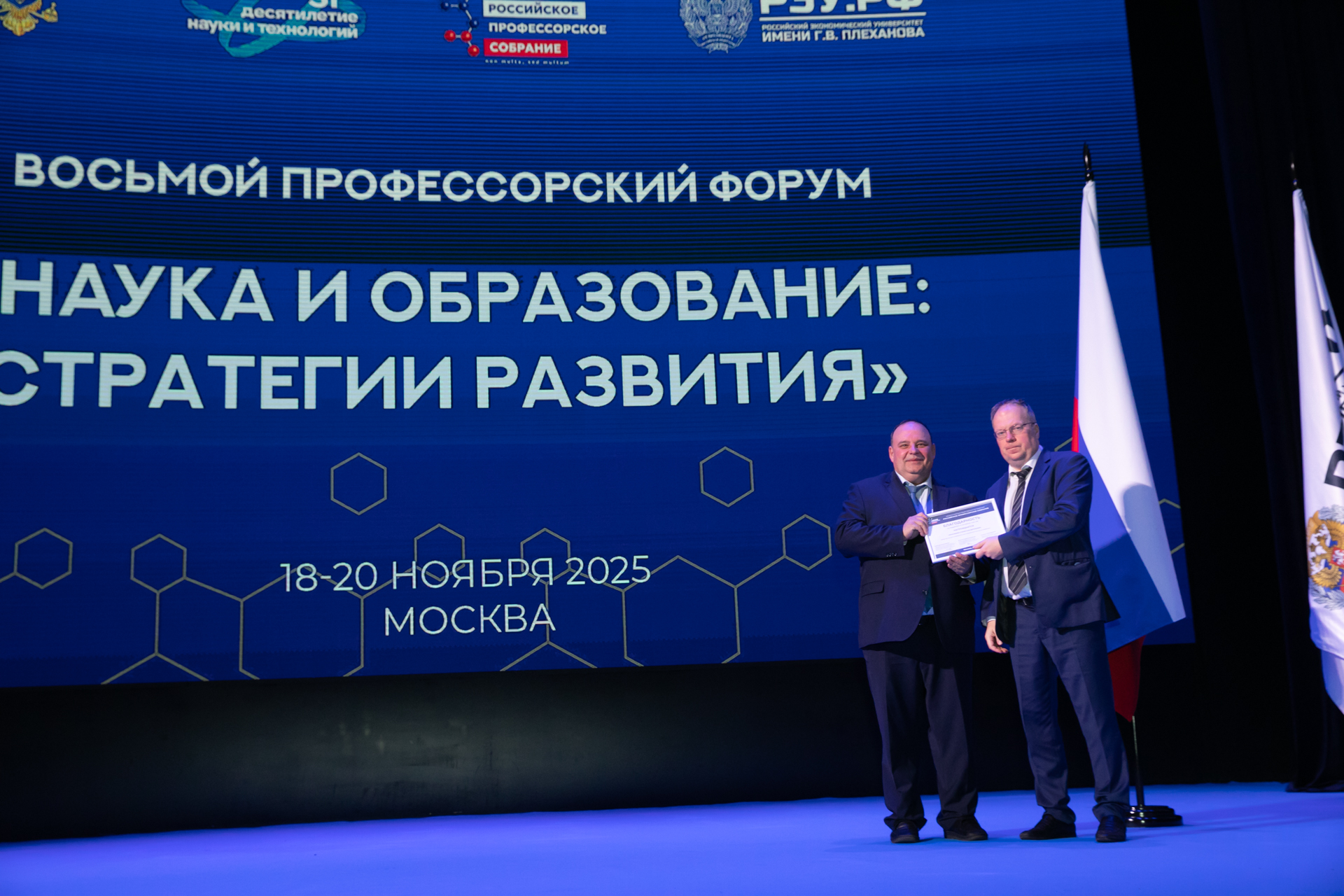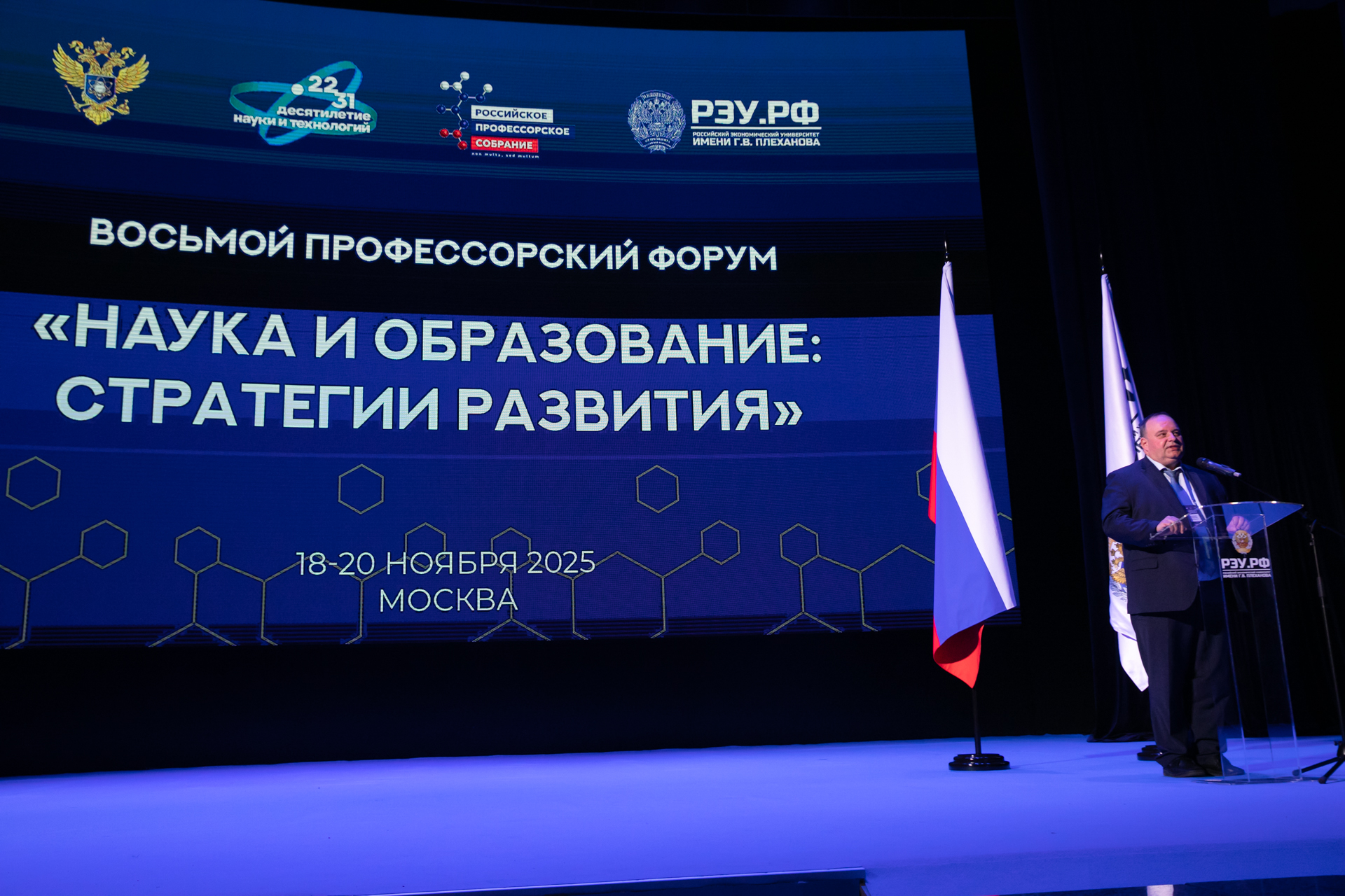 18 ноября 2025 года в конгресс-центре РЭУ им. Г.В. Плеханова прошел Восьмой Профессорский форум «Наука и образование: стратегии развития». Организатором форума выступила Общероссийская общественная организация «Российское профессорское Собрание» (РПС) при поддержке Министерства науки и высшего образования Российской Федерации.