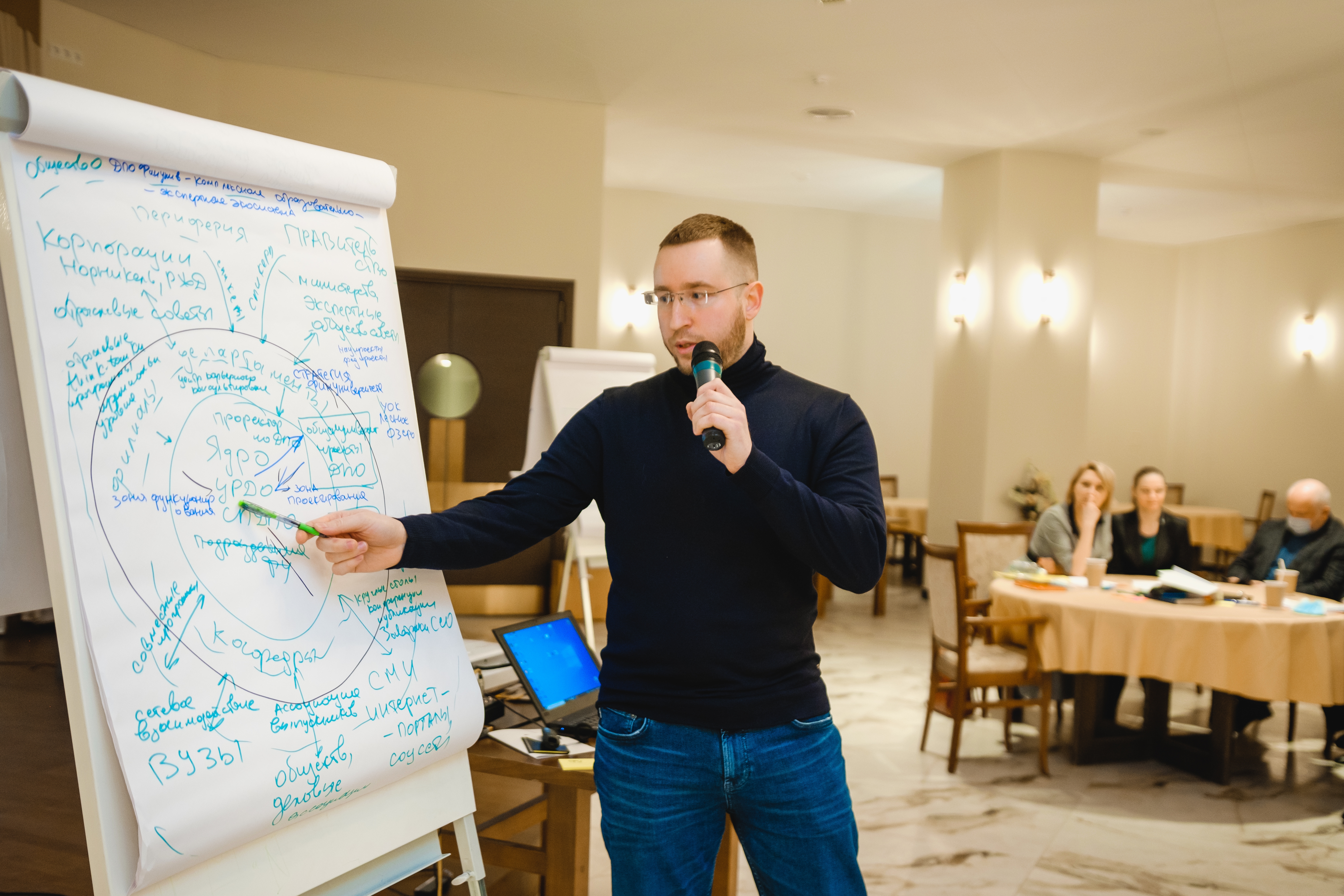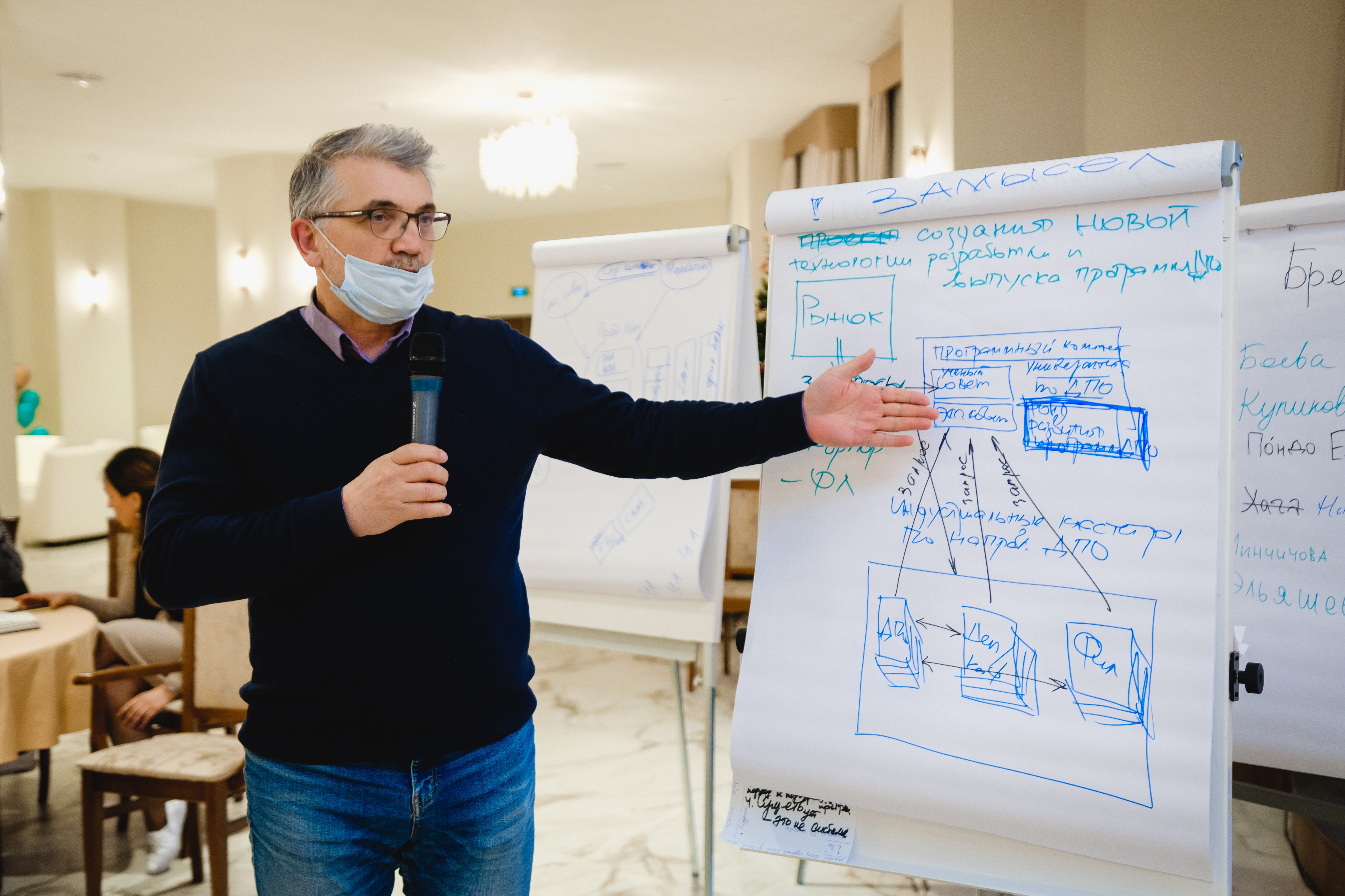 Работа участников проектной сессии была организована в малых группах, которые разработали и защитили проекты развития направления дополнительного профессионального образования по одной из тем – «цифровизация/технологии», «качество/экспертность программ», «экосистема/взаимодействие со стейкхолдерами», «бренд/PR».