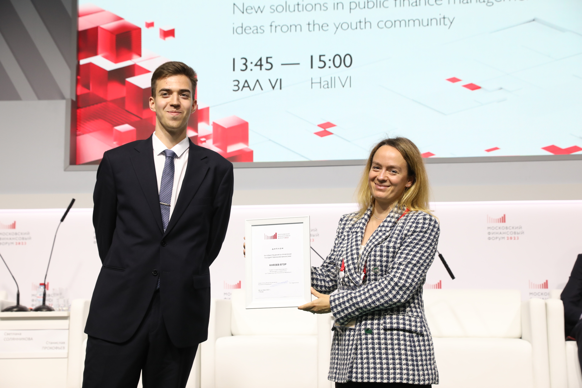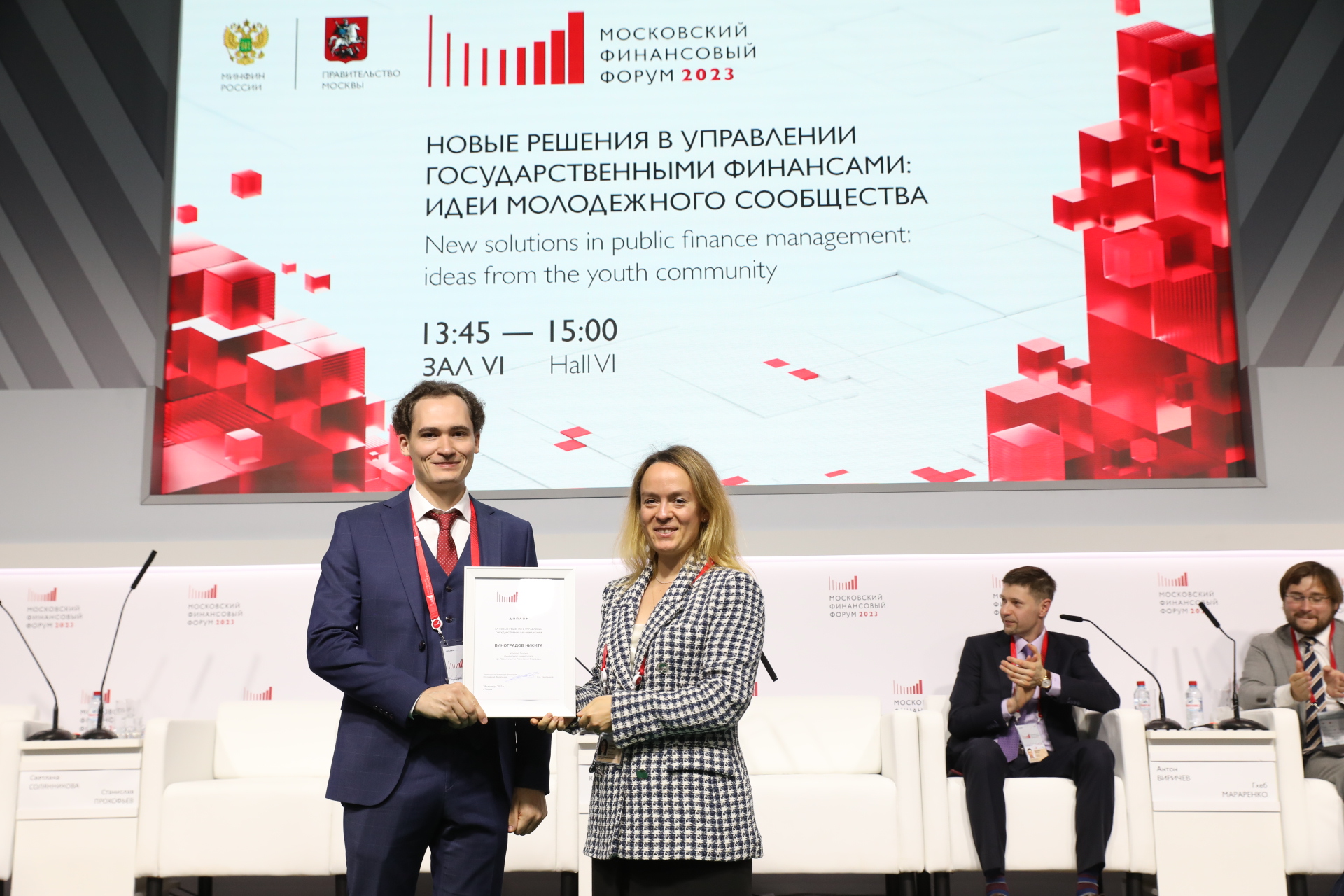 Финансовый университет на презентации молодежных инициатив представили аспирант Никита Виноградов и студенты Егор Князев и Антон Ткаченко. Они выступили с предложениями по повышению эффективности использования бюджетных инвестиций, формированию индивидуального пенсионного плана с помощью технологий искусственного интеллекта, использованию цифровых финансовых технологий в рамках реализации социальной политики.