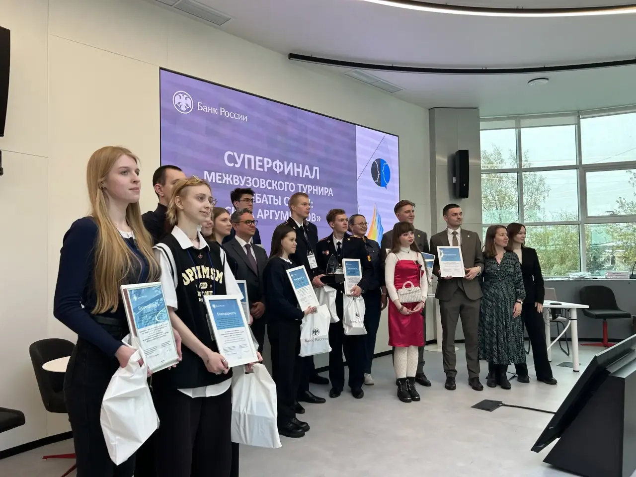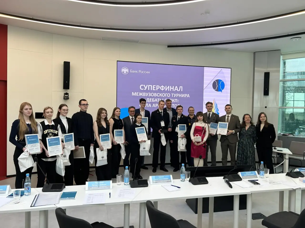 Студенты Финансового университета Владислав Крошечкин и Александр Кулинич в составе команды «Монетарные инноваторы» заняли второе призовое место в суперфинале, показав высокий уровень ораторских способностей и знаний в области денежно-кредитной политики Банка России. В качестве приза Владислав и Александр получили возможность бесплатного обучения в Летней макроэкономической школе Банка России в Санкт-Петербурге 29 июня 2026 года. Все участники суперфинала получили благодарственные письма за подписью руководителей Банка России и памятные призы.«Участники турнира уже вошли в историю, потому что мы впервые проводим мероприятие на всероссийском уровне. Надеемся, что формат будет развиваться и дальше, а участники Межвузовского турнира настолько ярко проявят себя, так полно раскроют его возможности, что он станет ступенькой, которая проложит дорогу для следующих коллег. И тогда те, кто придут после вас, смогут освоить самые важные знания о денежно-кредитной политике, умение вести дебаты и, конечно, использовать все это в своей профессиональной деятельности», - отметил Начальник Главного управления Банка России по Центральному федеральному округу, член Совета Директоров Банка России Рустэм Марданов.