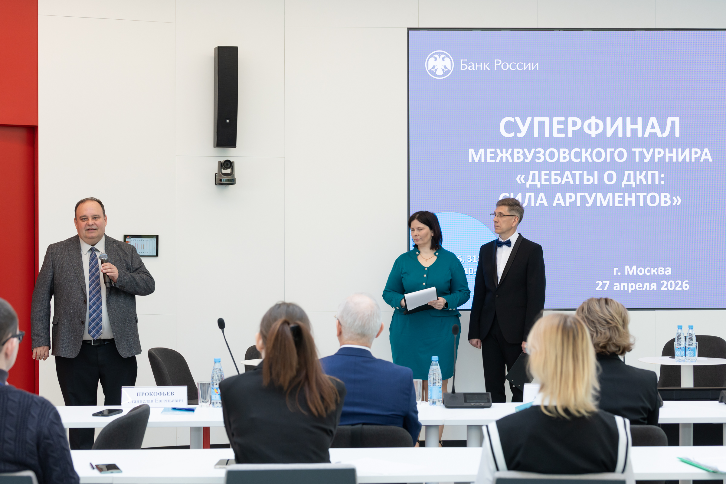 27 апреля 2026 года в Финансовом университете прошел суперфинал Межрегиональной деловой экономической игры «Дебаты о денежно-кредитной политике: сила аргументов». Суперфинал организован Главным управлением Центрального банка Российской Федерации по Центральному федеральному округу г. Москвы в целях развития прямых, живых и содержательных коммуникаций по денежно-кредитной политике именно со студенческой аудиторией.