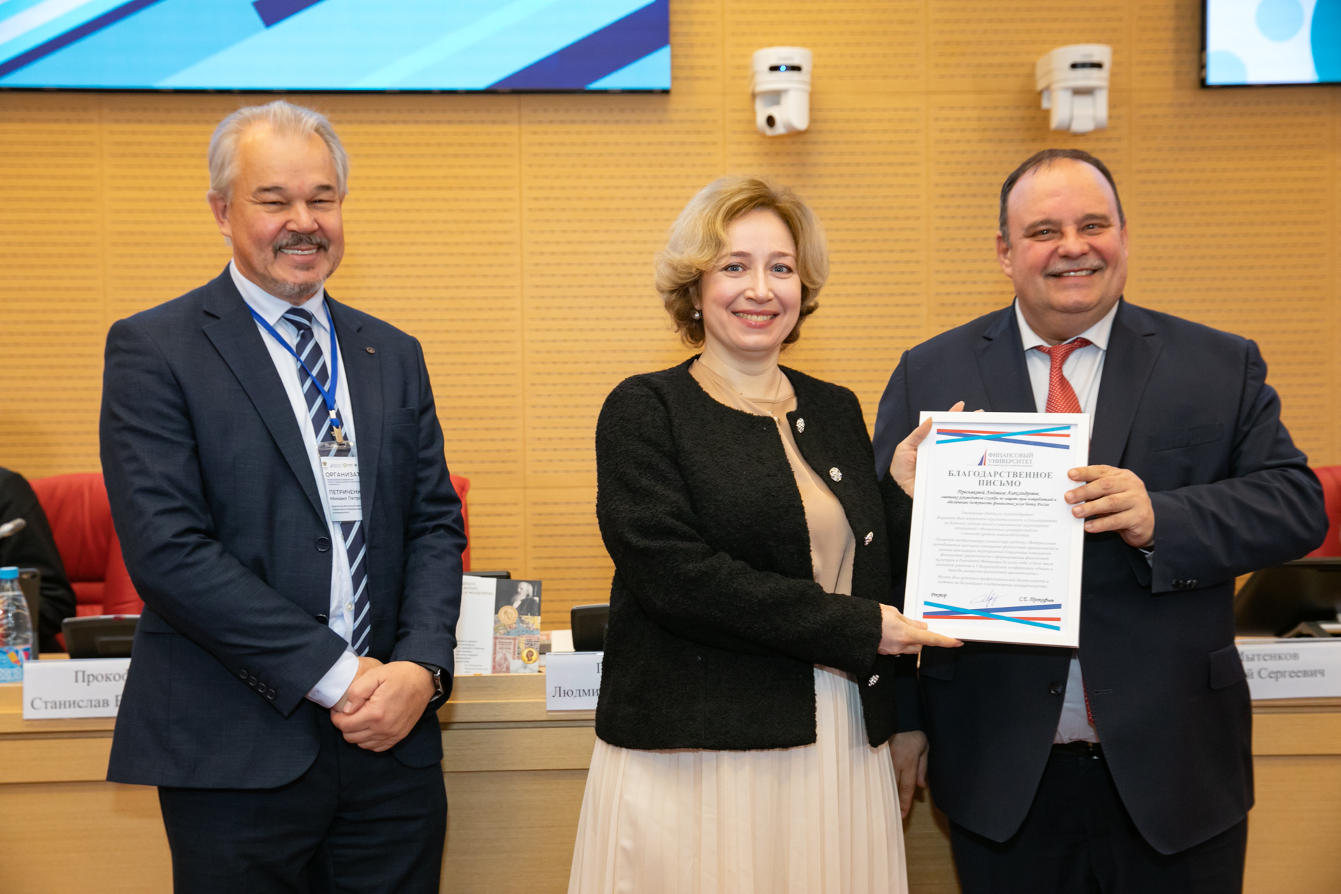 Также участникам Пленарного заседания Станислав Прокофьев вручил Благодарственные письма ректора Финансового университета за большой личный вклад в становление партнерских отношений с Финансовым университетом. Также в них отмечена продуктивная совместная работа с федеральным методическим центром повышения финансовой грамотности на базе Финансового университета.
