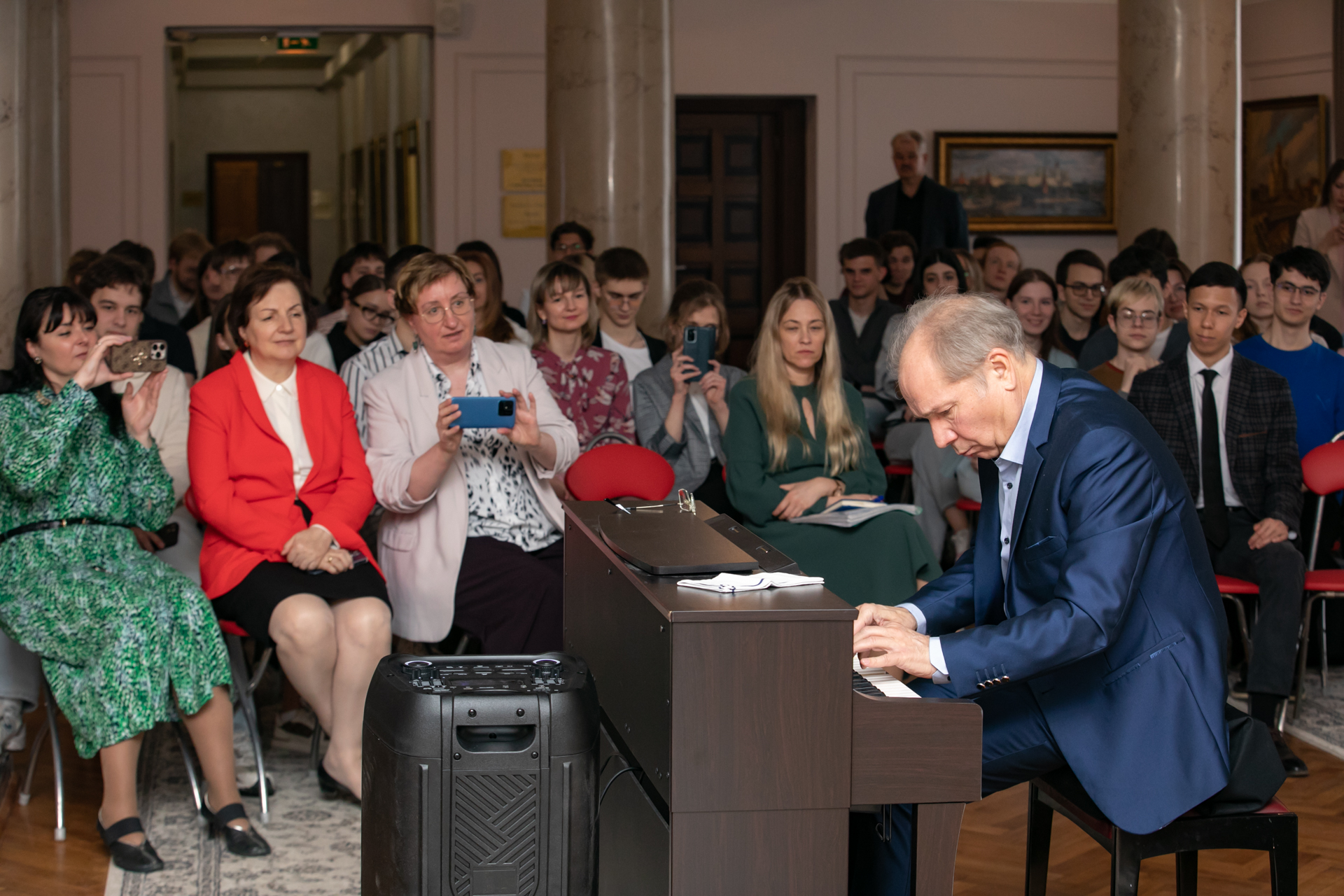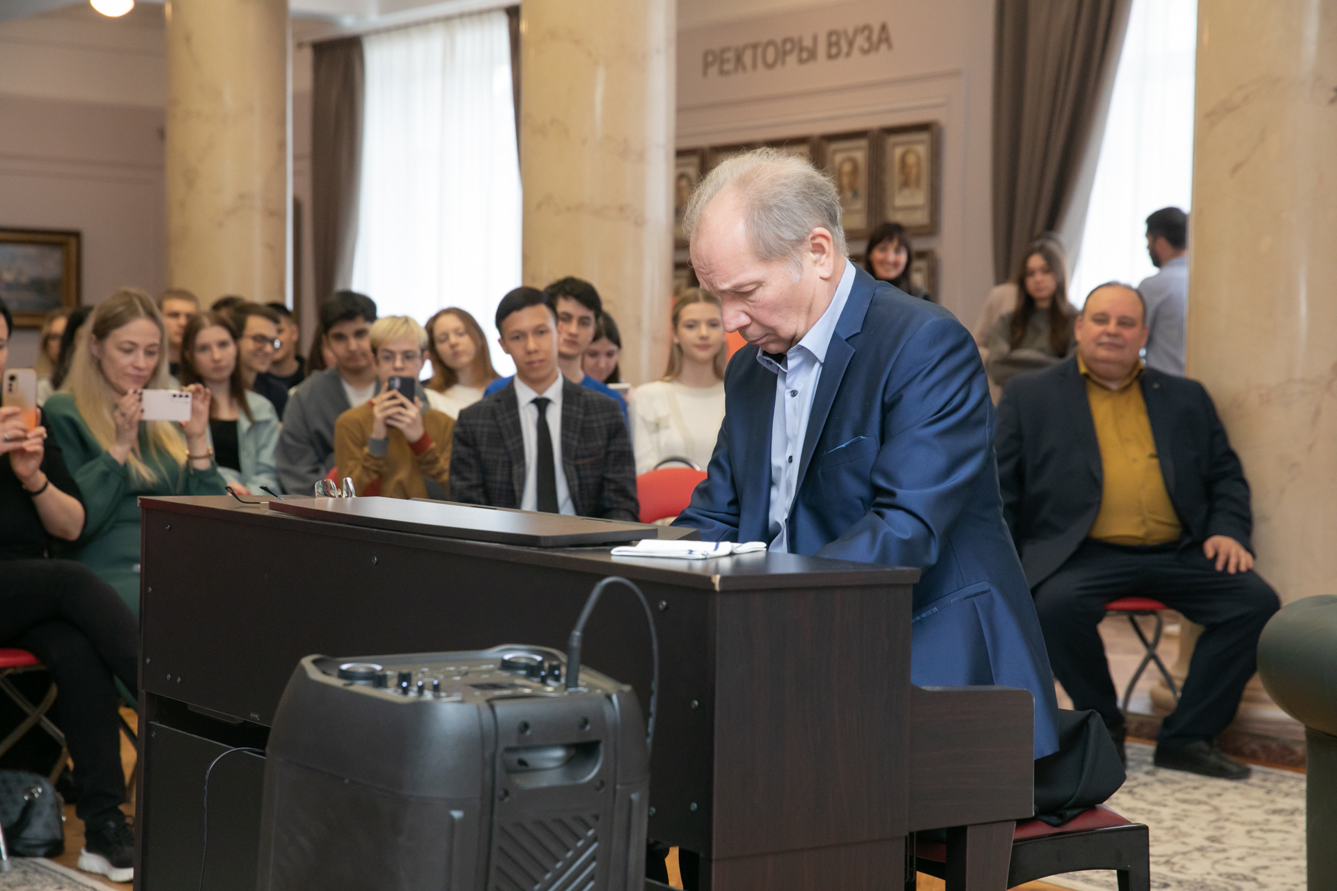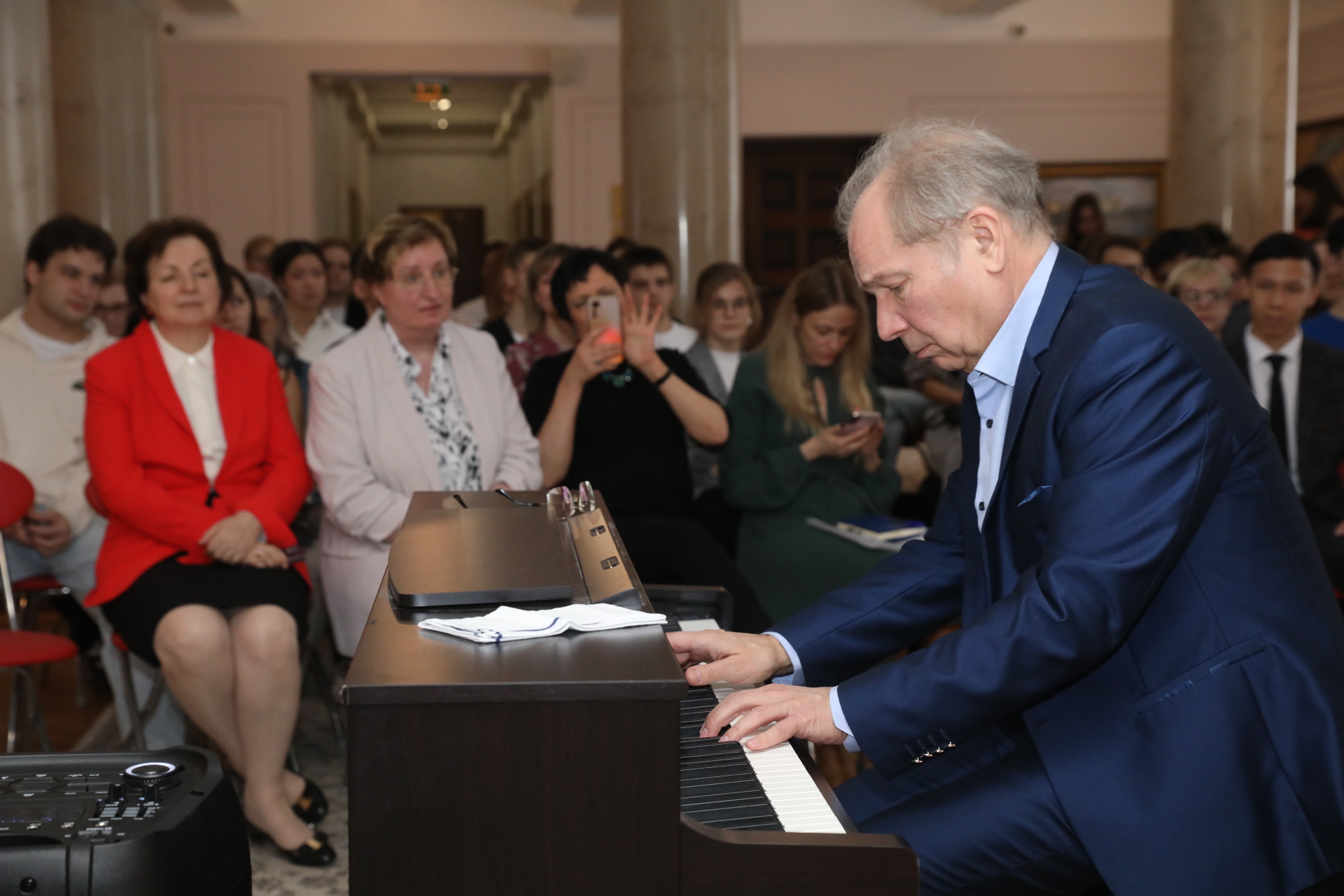 Для гостей вечера Юрий Розум подготовил разнообразную программу, в которую вошли знаменитые классические произведения. Он не только покорил сердца слушателей своим мастерством, но и подарил студентам невероятные эмоции и вдохновение.Ректор Финансового университета Станислав Прокофьев тепло приветствовал артиста: «Имя Юрия Александровича известно не только в нашей стране, но и далеко за её пределами. Его виртуозная игра на фортепиано, педагогический талант и многогранная общественная деятельность вдохновляют тысячи людей по всему миру». Станислав Прокофьев подчеркнул, что такого рода встречи – уникальный шанс прикоснуться к искусству и узнать больше о жизни и творчестве мастера