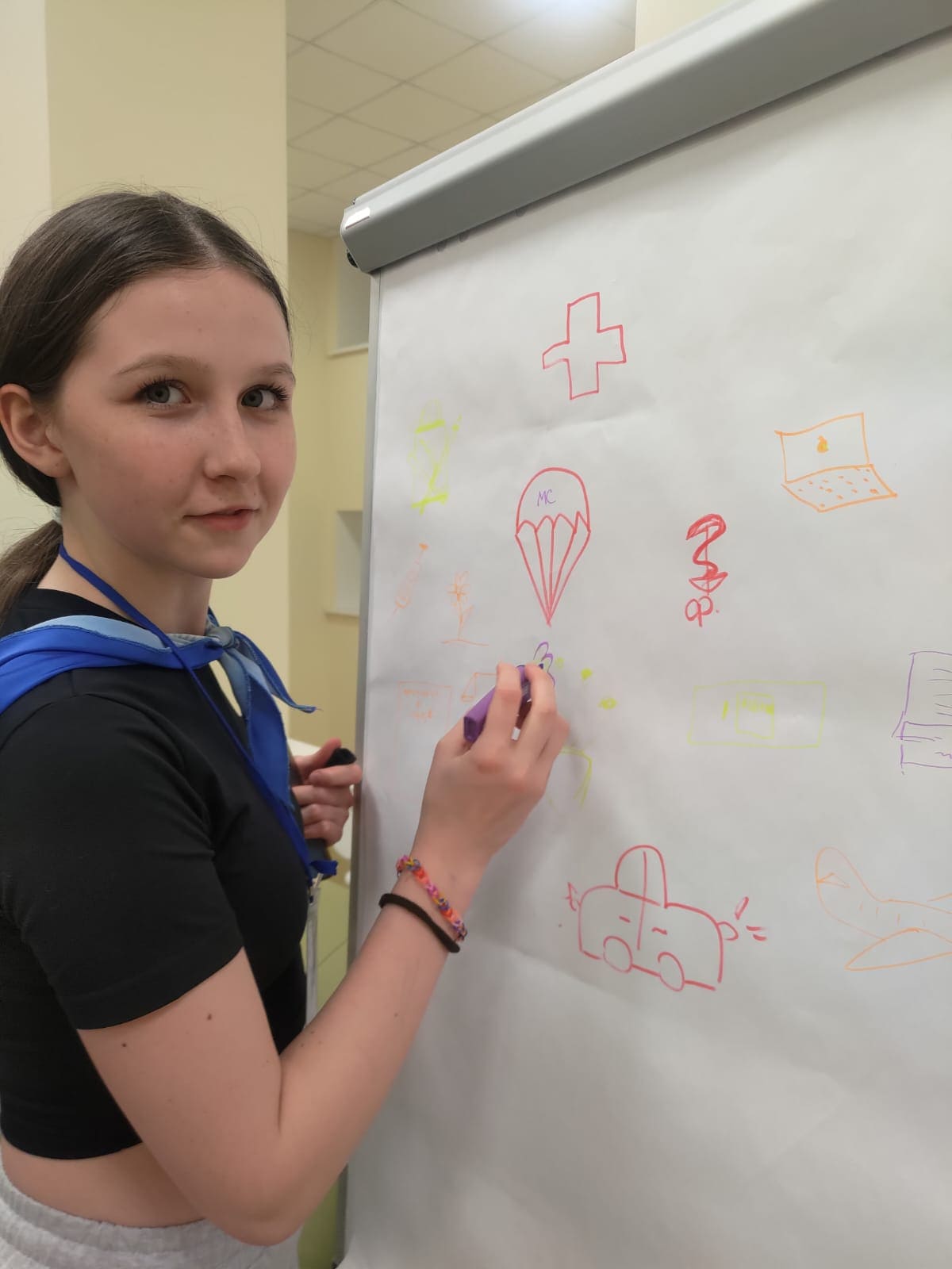 В начале встречи участникам была предложена экспресс - диагностика «Символ моей будущей профессии». Самарские старшеклассники активно включились в работу, подошли к поставленной задаче творчески и представили оригинальные символы своих будущих профессий. Многие ребята видят себя в сфере медицины, туризма, социальных и военных профессий.