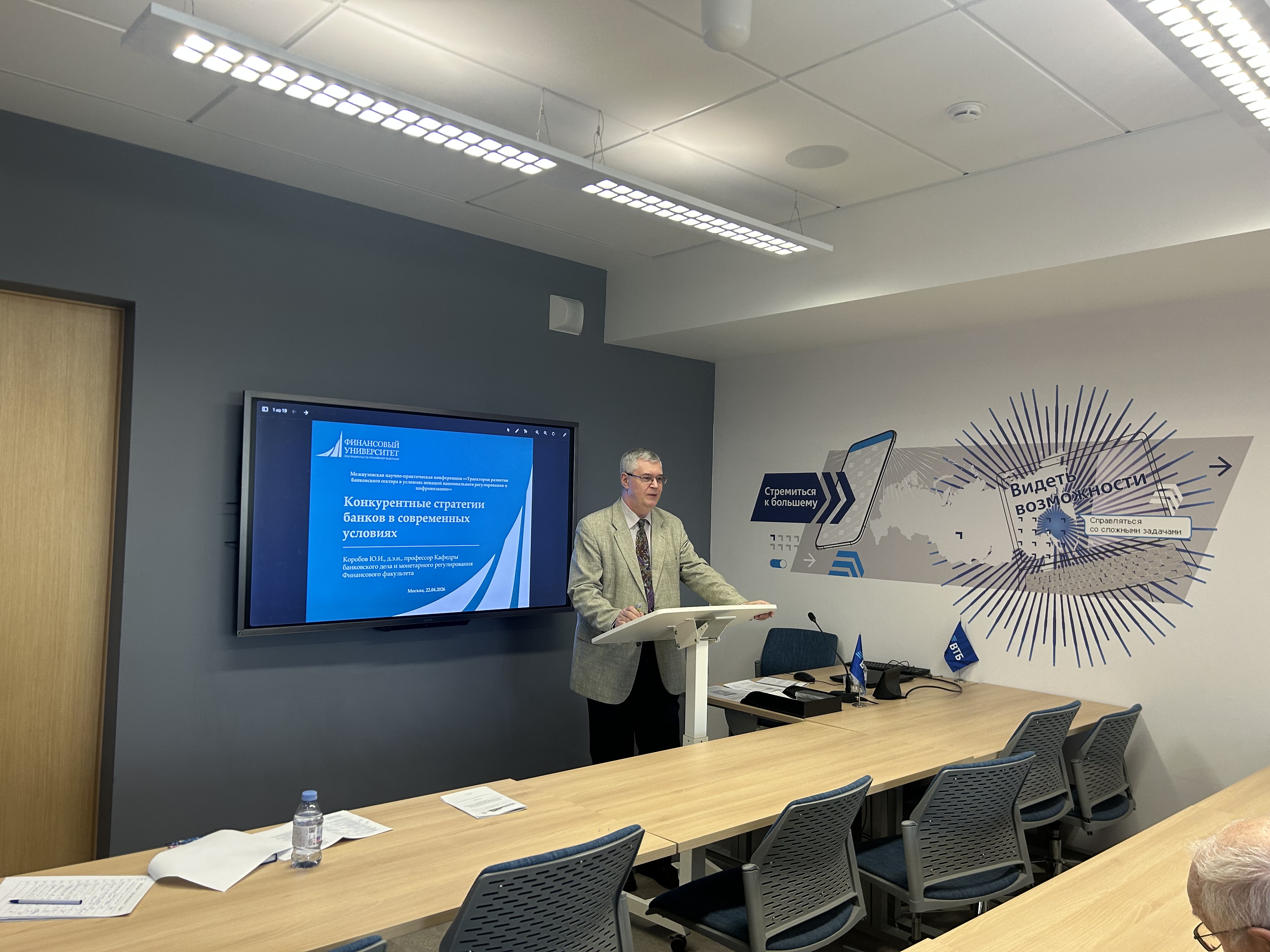 Профессор кафедры банковского дела и монетарного регулирования Наталья Амосова затронула тему поведенческих финансов и их влияния на развитие банковского сектора: «Банк России ведет большую работу по выявлению на финансовом рынке недобросовестных практик. Поведенческий надзор Банка России нацелен на восстановление нарушенных прав конкретных людей и устранение причин появления жалоб. Многие существенные явления современной экономической жизни все еще мало изучены и не нашли должного отражения в теории поведенческих финансов. Это новые горизонты: децентрализованные финансы, санкционное противостояние, геофинансовые конфликты, подрывные технологии (ИИ), платформенные институты». Профессор кафедры банковского дела и монетарного регулирования Юрий Коробов также рассказал участникам об основных конкурентных преимуществах современных банков.