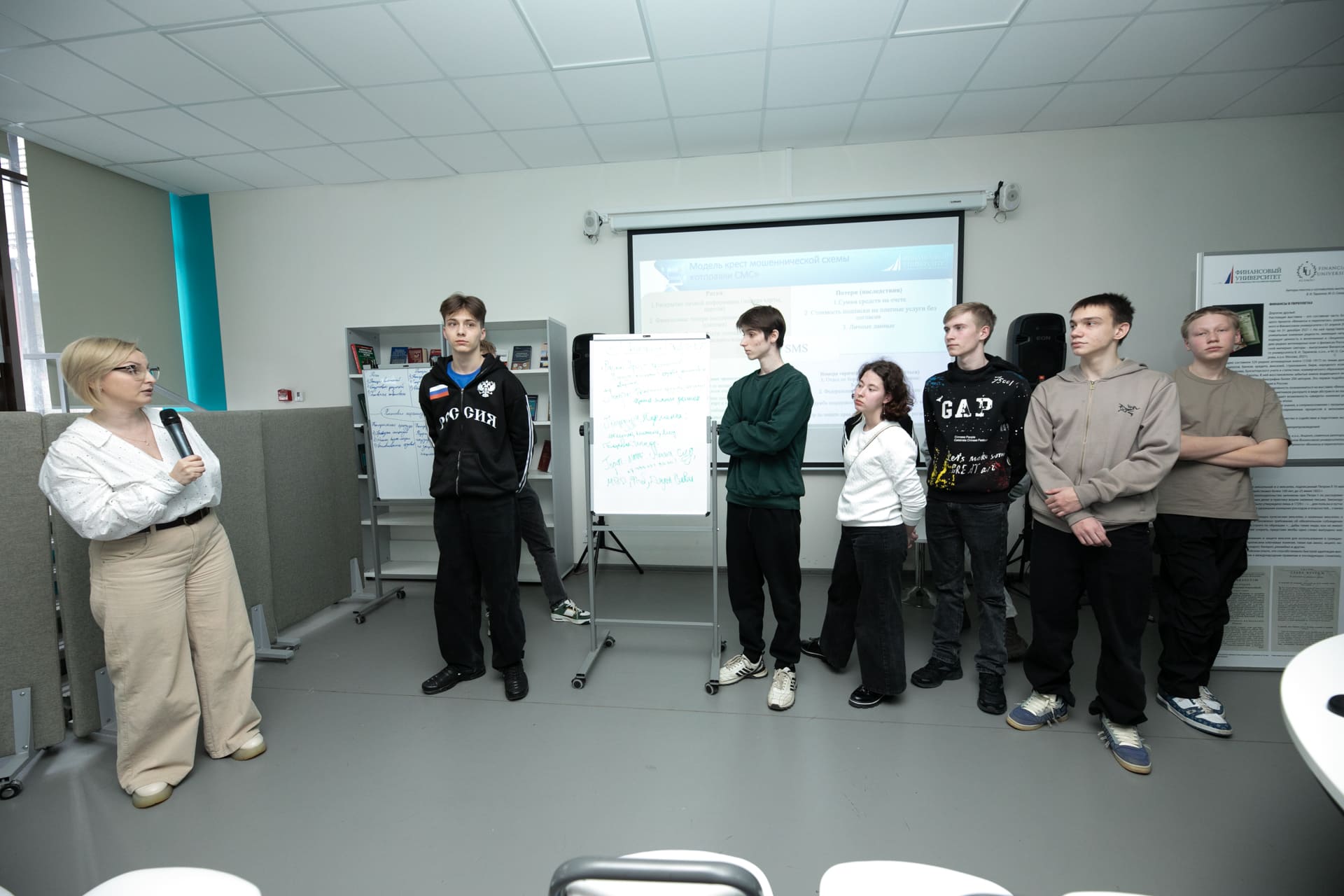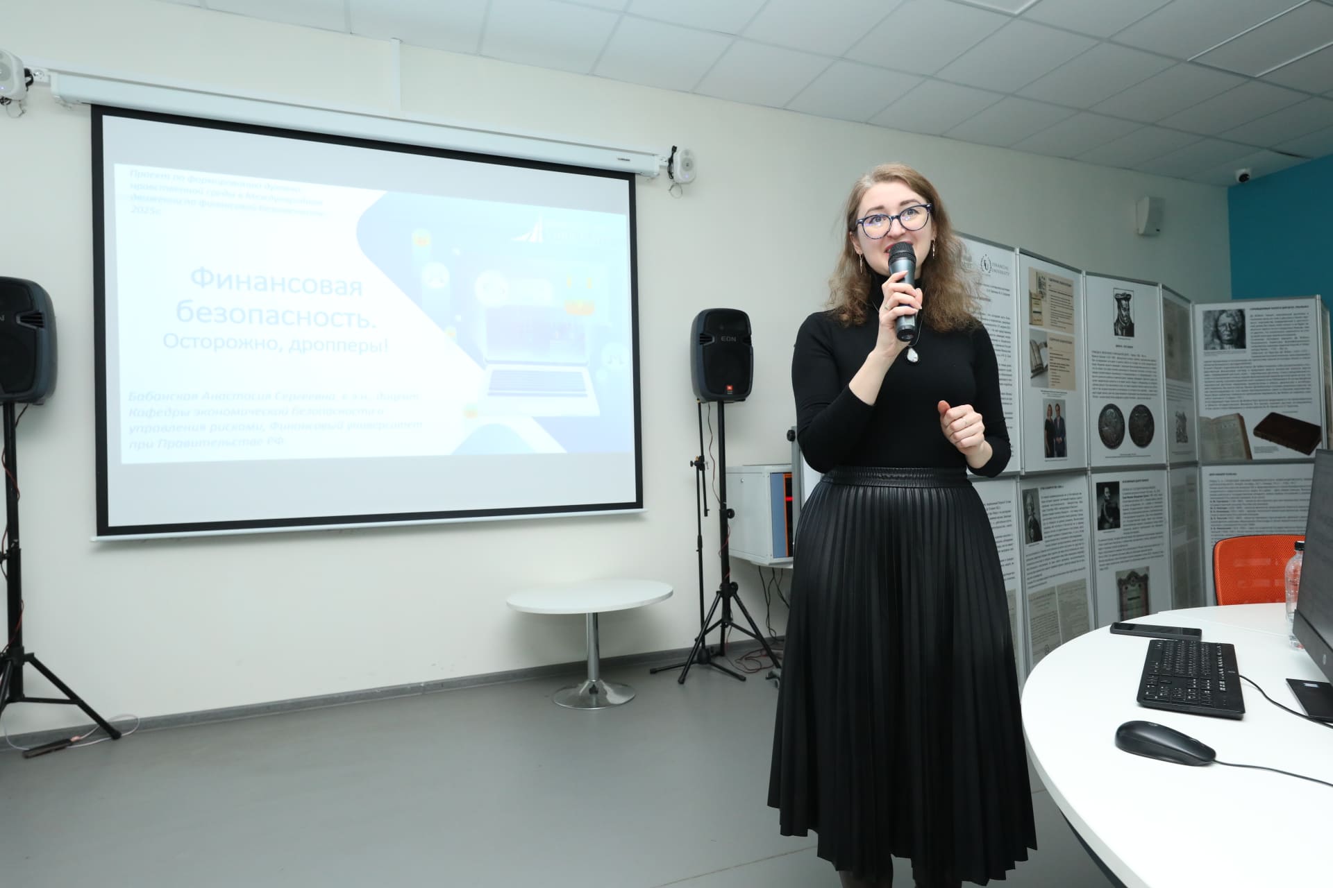 Преподаватели Кафедры экономической безопасности и управления рисками Финуниверситета Наталья Кабанова и Анастасия Бабанская провели занятия по основам финансовой безопасности и противодействию дропперству. Наталья Кабанова наглядно объяснила, как мошеннические схемы влияют на общество, акцентируя внимание на важности осознания этих явлений в современном мире. Учащиеся также познакомились с концепциями «хищников» и «случайных мошенников», что способствовало глубокому пониманию механизмов, лежащих в основе различных форм обмана. Большой интерес у школьников вызвала лекция про дропперов с разбором конкретных кейсов и интерактивным тестированием.