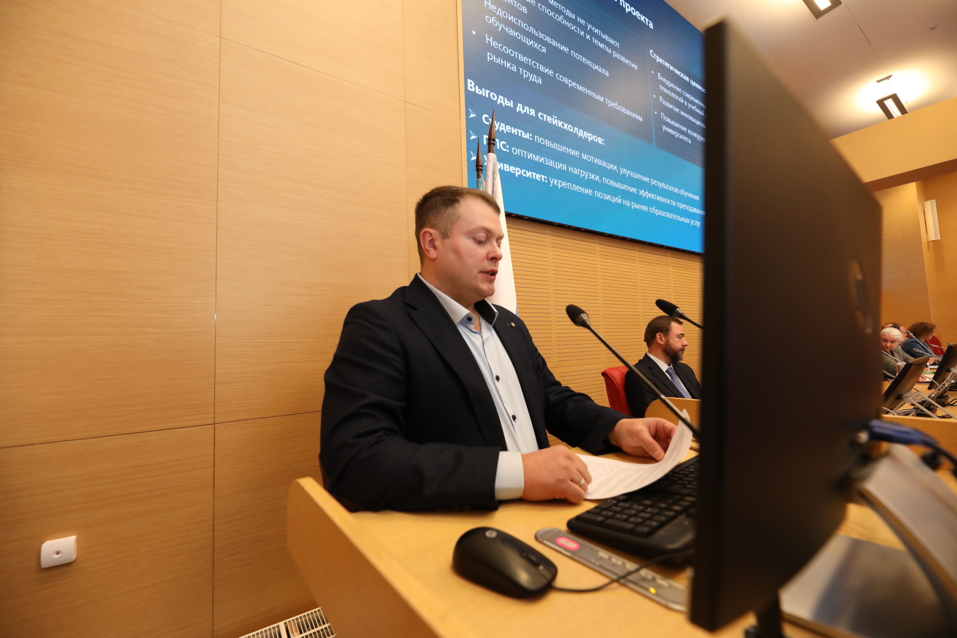 Участниками кадрового резерва было представлено семь стратегических проектов, направленных на комплексное развитие университета и охватывающих такие ключевые направления, как разработка молодежной атрибутики, создание адаптивной обучающей системы на основе ИИ, разработка механизмов привлечения и удержания молодых специалистов, усиление роли филиалов в качестве центров консалтинга, формирование единой маркетинговой стратегии, создание системы научной коллаборации между филиалами и развитие высокотехнологичного агрегатора дополнительного образования.