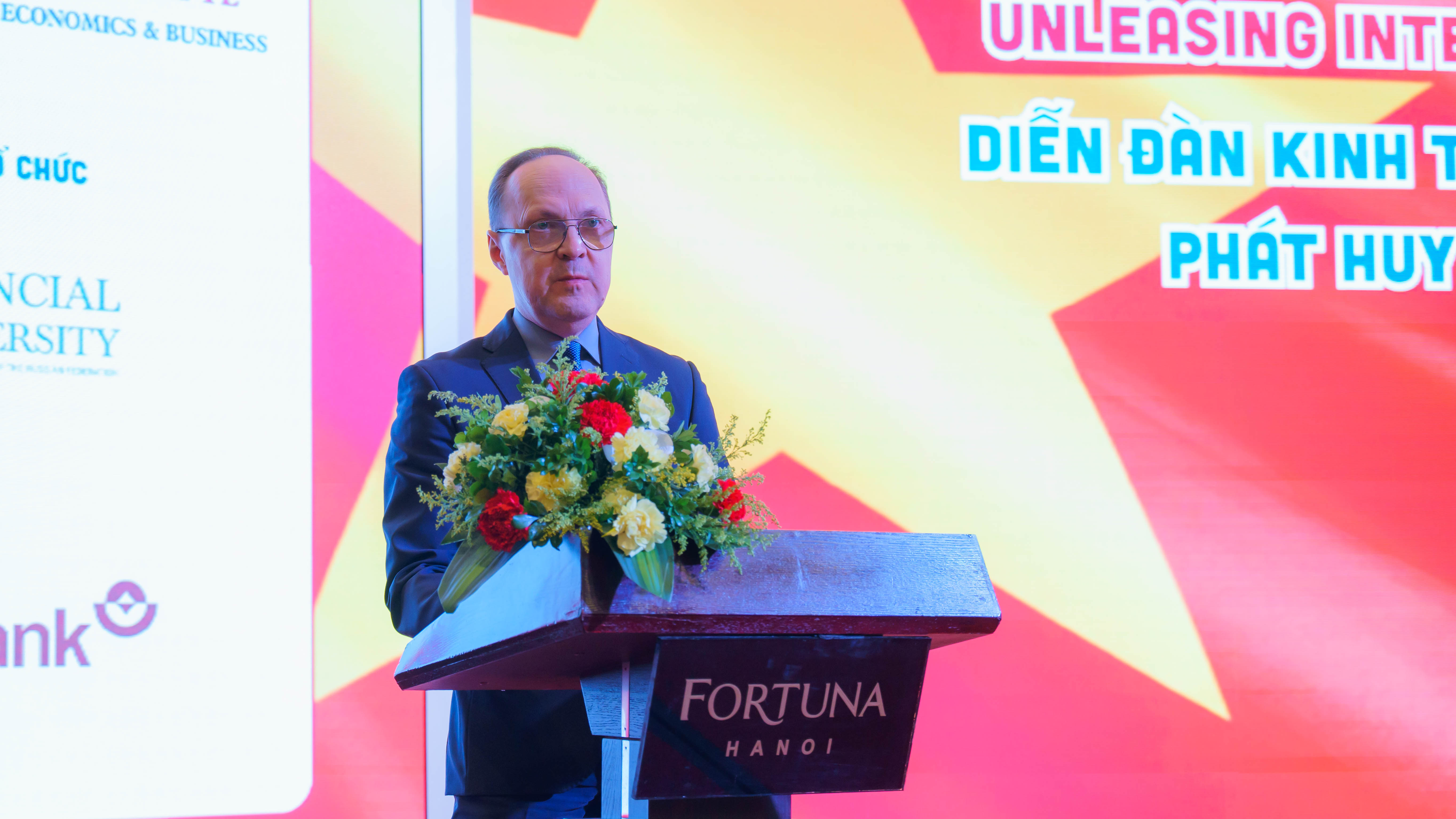 Чрезвычайный и Полномочный Посол России в Социалистической Республике Вьетнам Геннадий Бездетко, приветствуя участников Форума, подчеркнул: «2026 год объявлен Перекрестным Годом научно-образовательного сотрудничества России и Вьетнама, что придает Форуму особое значение. Особо отмечу деятельность Российско-Вьетнамского консорциума экономических университетов. Созданный в 2024 году, Консорциум уже доказал свою эффективность. Совместные образовательные программы, научные изыскания, продвижение русского и вьетнамского языков, студенческая мобильность — это реальные шаги к укреплению стратегического партнерства. Рассчитываем, что сегодняшний Форум даст импульс новым проектам в области экономики, финансов, цифровой трансформации и международной торговли».