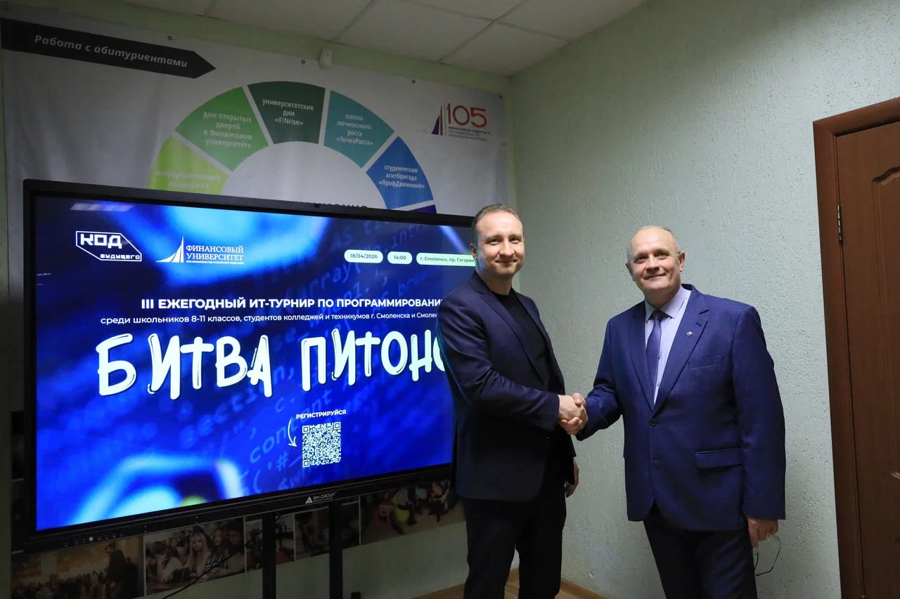 На площадке Смоленского филиала Финансового университета при Правительстве РФ 17 апреля 2026 года с успехом прошел Третий ежегодный турнир по программированию «Битва питонов». Масштабное технологическое состязание состоялось в рамках реализации федерального проекта «Код будущего» (национальная программа «Цифровая экономика РФ»), одним из ведущих провайдеров которого Финансовый университет выступает с 2022 года.