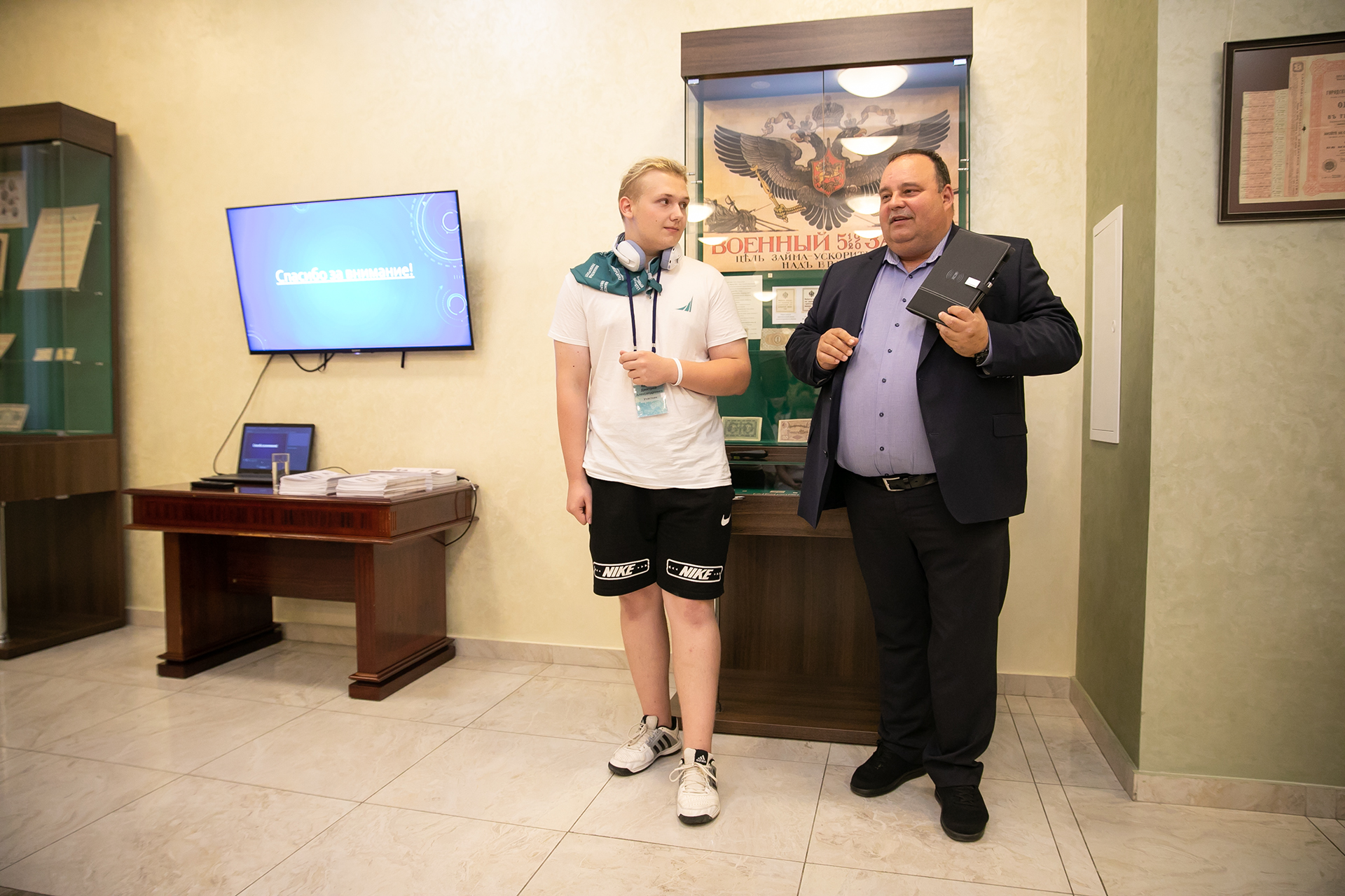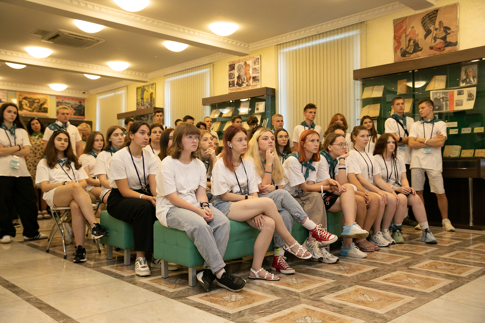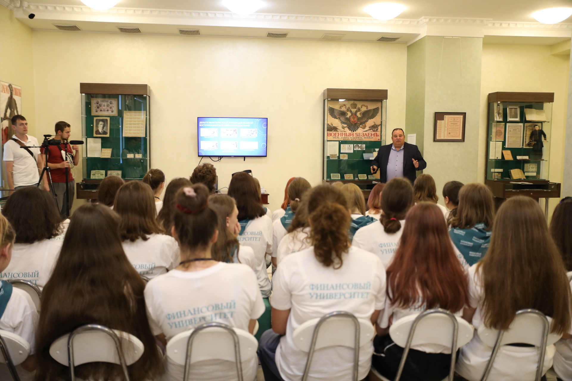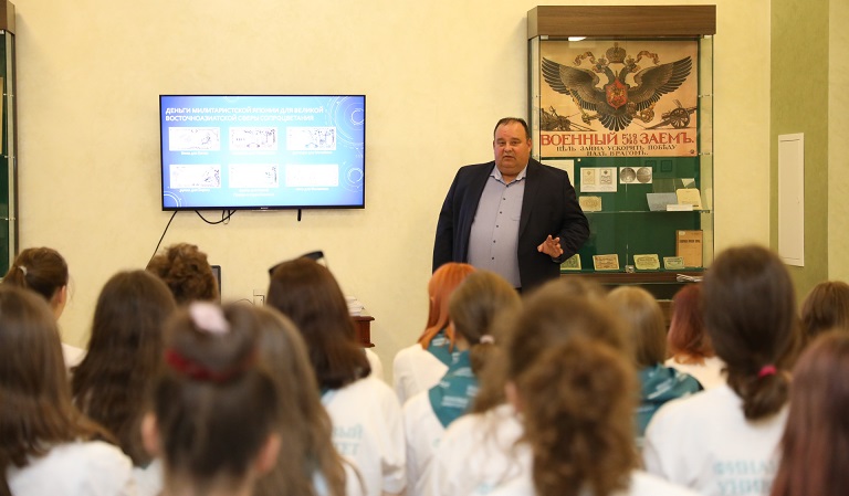 17 августа 2023 года ректор Финансового университета Станислав Прокофьев встретился со школьниками из ДНР и провел для них экскурсию по Музею Финансового университета.