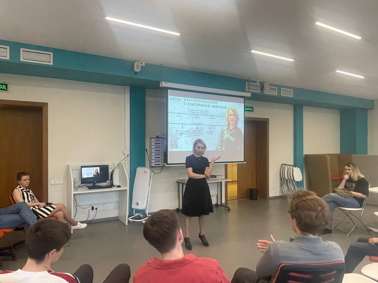 Во встрече приняли участие студенты образовательной программы «Корпоративные финансы». В рамах встречи Екатерина Чижова рассказала об особенностях профессии, о значимых качествах и навыках, которыми должен обладать человек, претендующий на работу в отрасли. Обсудили процесс работы с состоятельными клиентами, а также различные подходы к управлению активами и инвестированию. Также спикер продемонстрировала практические кейсы и поделилась лайфхаками, как совмещать полноценную жизнь и трудоемкую работу частного банкира.