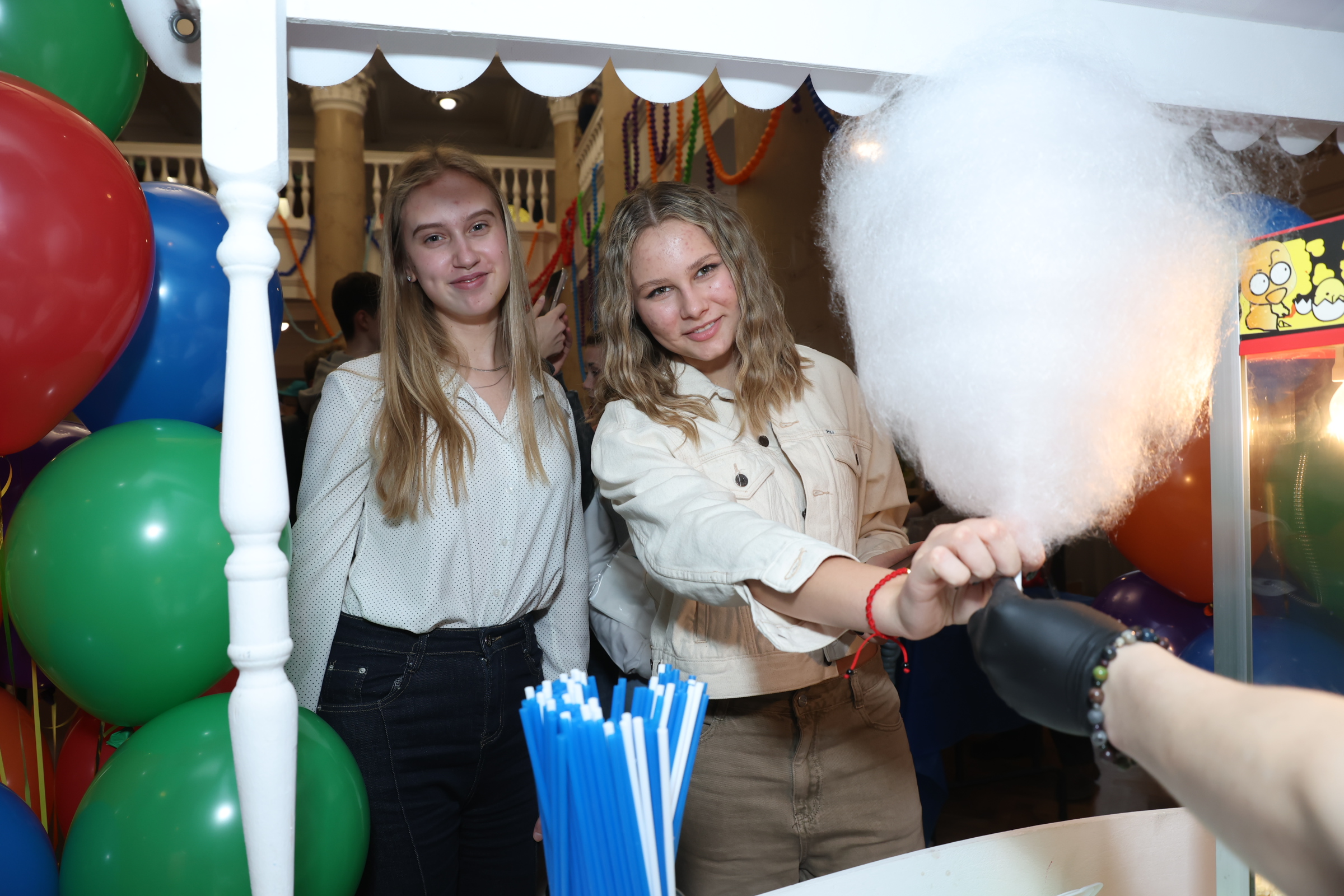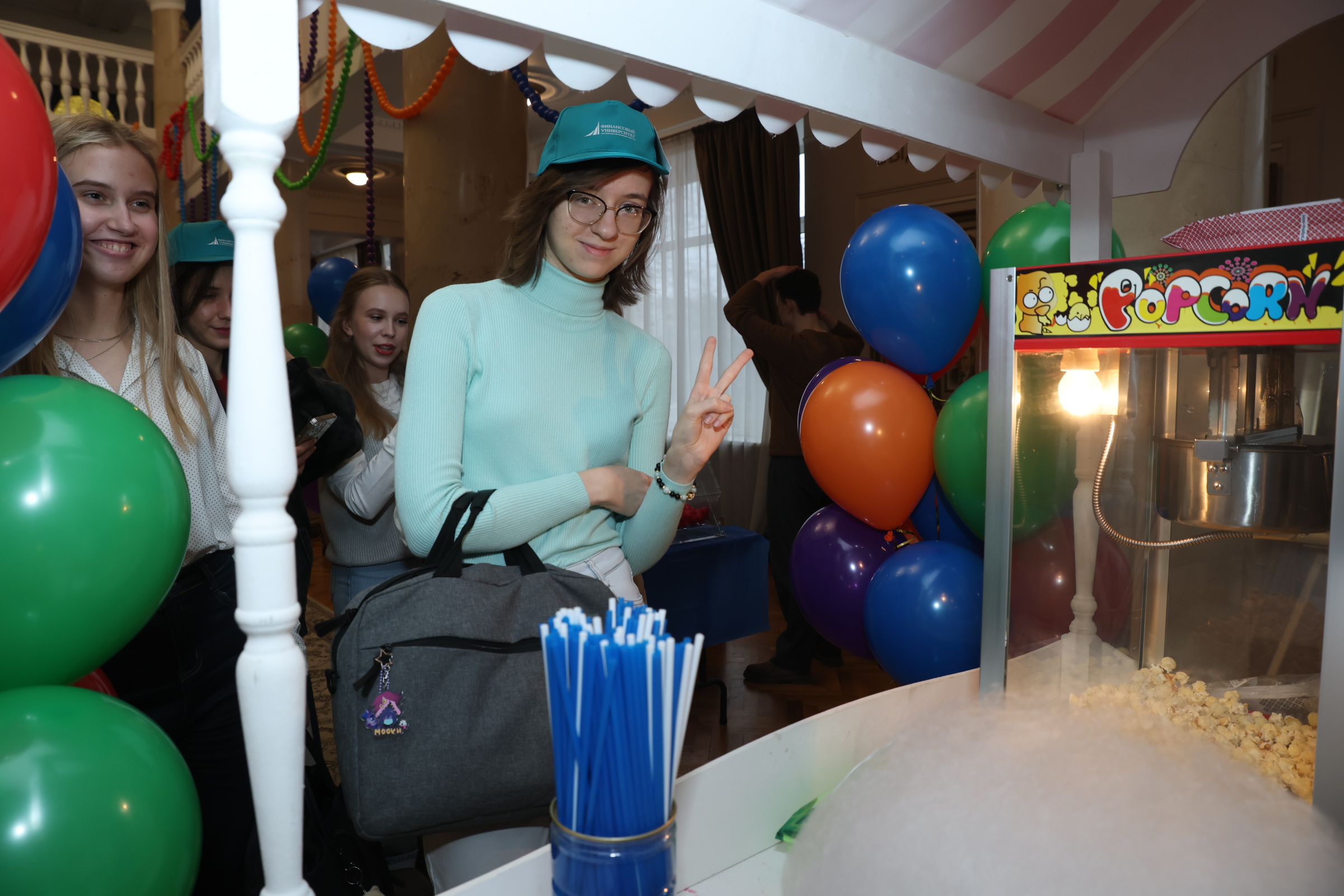 Участники мероприятия посетили тематические площадки, где смогли украсить свой уникальный праздничный колпак и выиграть фирменную продукцию Финансового университета в беспроигрышной лотерее. Участников ждали угощения — попкорн и сладкая вата. Каждый желающий мог оставить свой след, раскрашивая яркий тематический стенд. Студенты фотографировались на фотоаппарат моментальной печати и писали теплые пожелания и поздравления в памятный альбом, который пополнился искренними словами любви к Альма-матер.