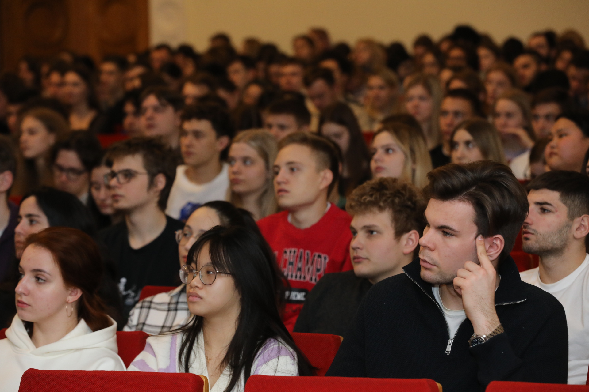 В ходе лекции Татьяна Шевцова рассказала о современной военно-политической обстановке в мире и актуальных вызовах, стоящих перед нашей страной, отметив важную роль высококвалифицированных финансистов, способных находить эффективные решения и добиваться результатов.