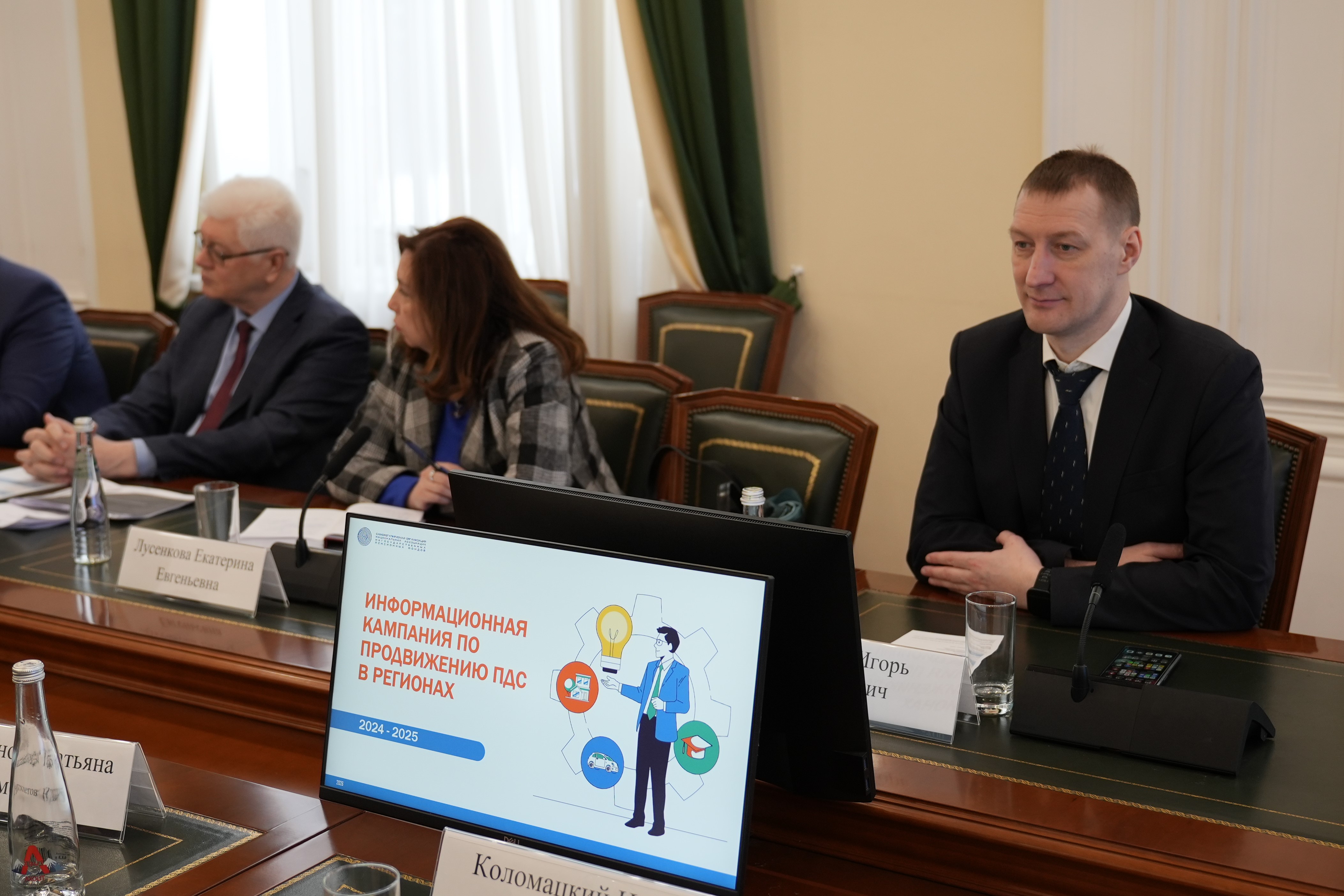 Участники обсудили итоги работы по популяризации программы долгосрочных сбережений за два года и результаты социологических исследований уровня доверия граждан к системе НПО, оценили подготовку специалистов финансового просвещения, квалифицированных для консультирования по ПДС. Итогом обсуждения стало решение о дальнейшем взаимодействии представленных организаций в области повышения финансовой грамотности взрослых граждан России.